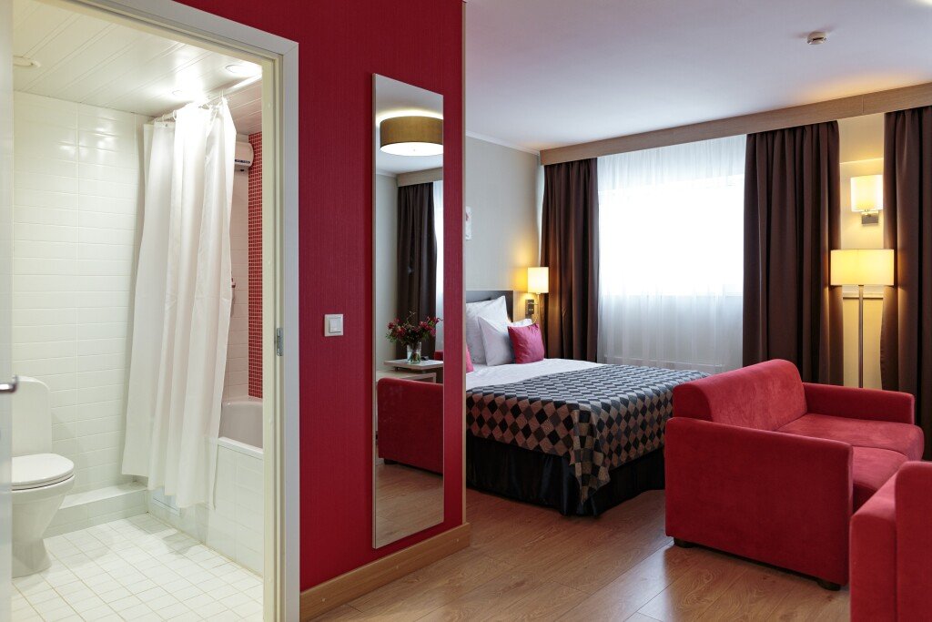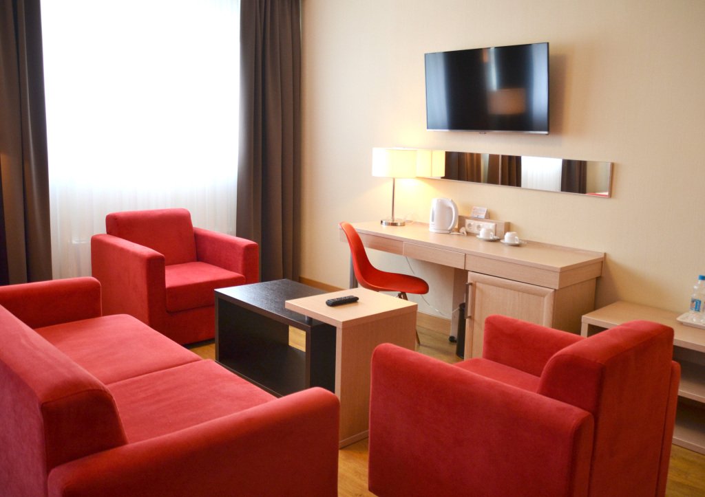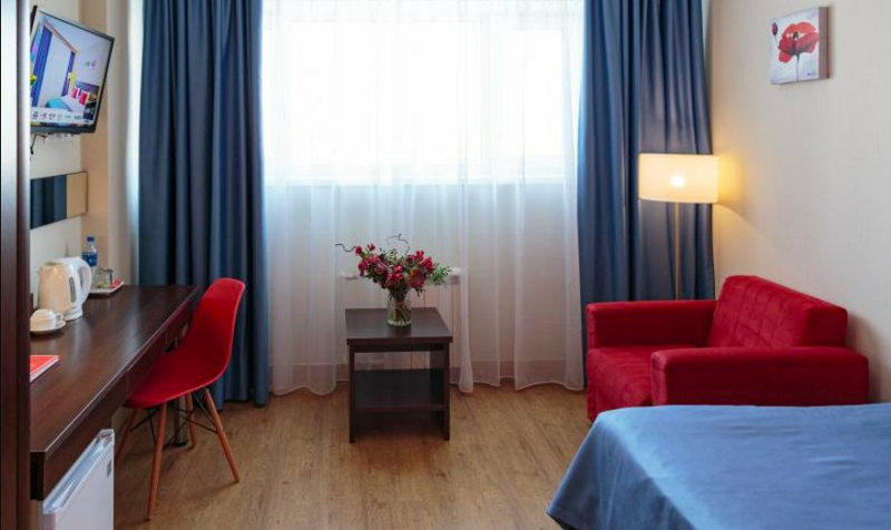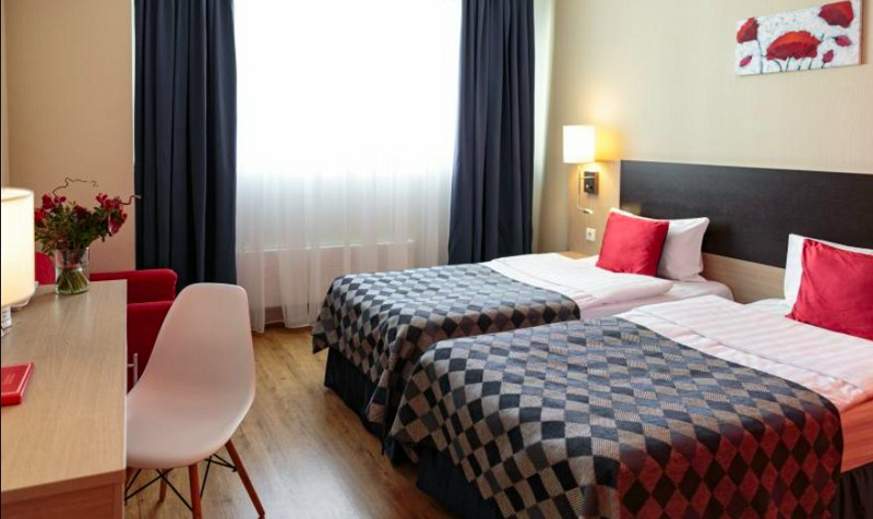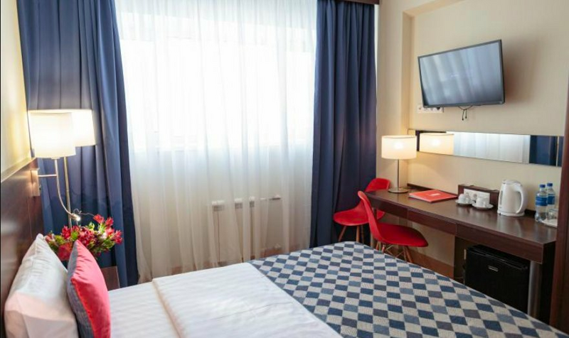 Цена для Москвы отличная! Нормальные, хоть и не большого размера номера. Удобные кровати, кондиционер, холодильник, чайник с чаем и кофе.