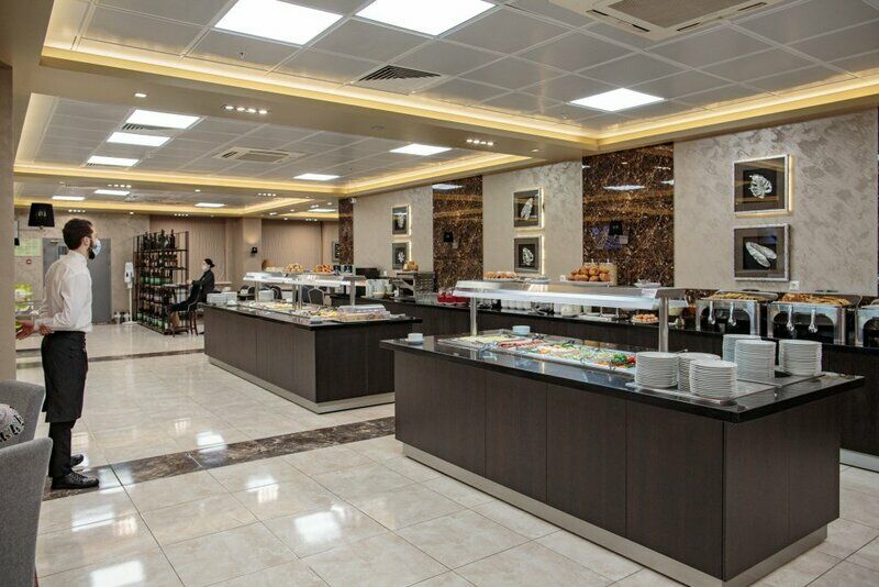Ресторан «Крым», расположенный на 2 этаже, предлагает завтрак по утрам, а также обед и ужин с блюдами европейской и русской кухни. На всей территории отеля предоставляется бесплатный Wi-Fi.