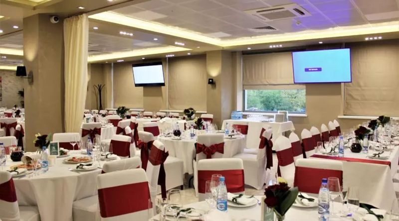 Читать полностьюРесторан «Крым» занимает второй этаж в здании конференц-центра, вместимость ресторана – 200 посадочных мест. Интерьер ресторана выполнен в бежевых тонах, что создаёт теплую и уютную атмосферу, а универсальность стиля позволяет использовать зал для любых деловых и праздничных мероприятий. В обширное меню ресторана «Крым» входят блюда европейской кухни, авторские проработки и уникальные рецепты крымской кухни. Винная карта, помимо распространённых и популярных крепких напитков представляет вина крупнейшего винодельческого хозяйства Крыма – завода Alma Valley.