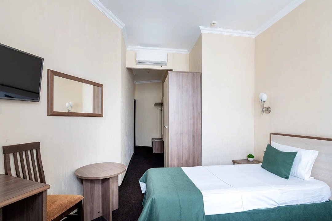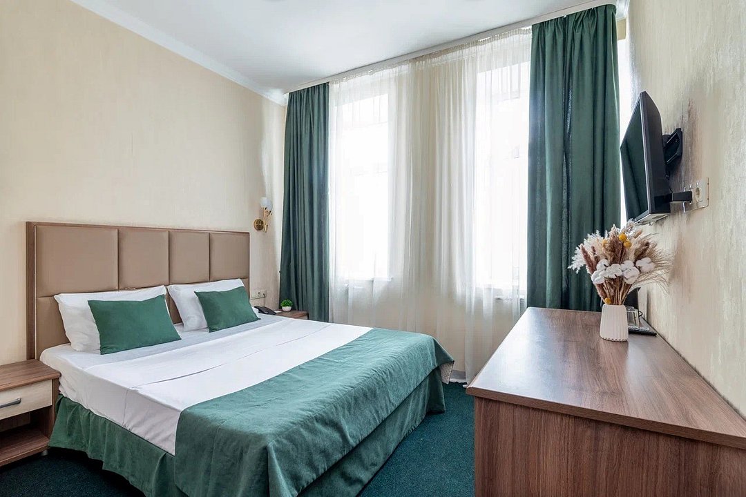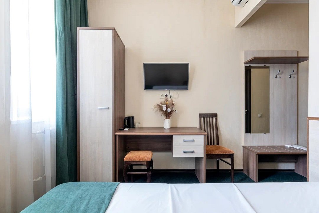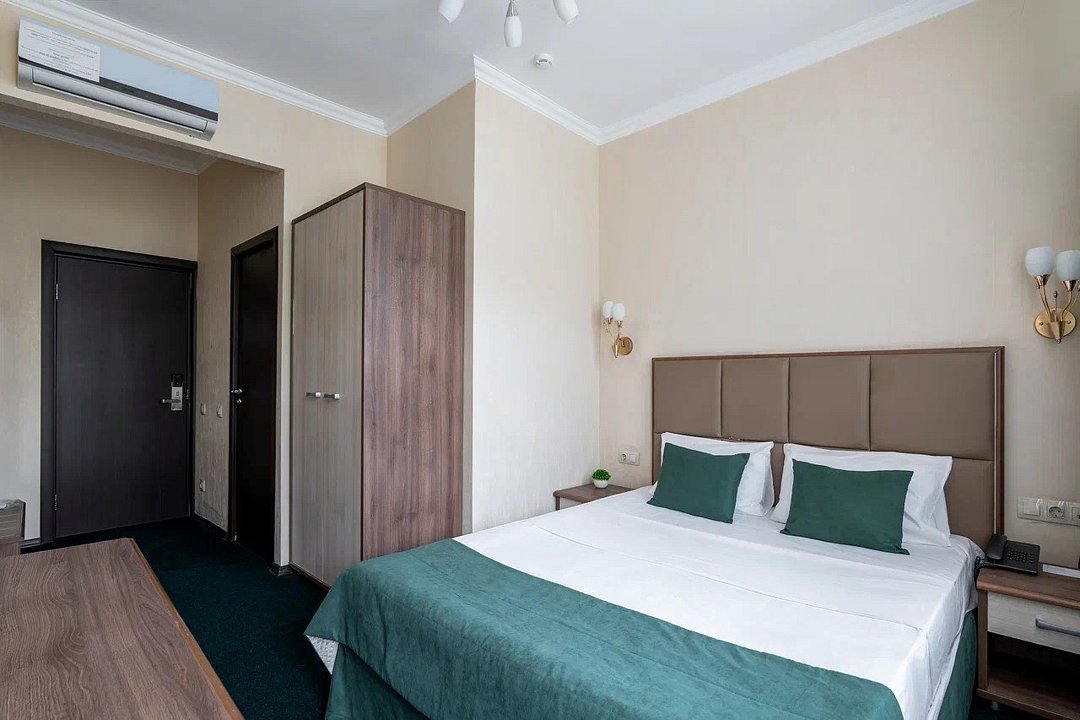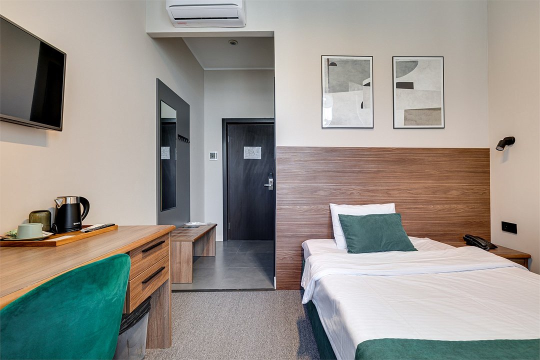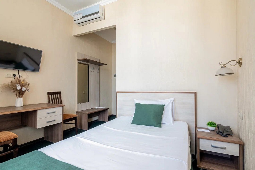 Уютный номер с видом на город, отлично подойдет для командировок и личных поездок. Удобства в номере: Рабочий стол Ковровое покрытие Москитная сетка Шкаф/гардероб Сушилка для одежды Ванная комната: Душ Фен Халат Туалетные принадлежности Тапочки Медиа и Технологии: Телефон Спутниковые каналы Телевизор с плоским экраном Услуги и Дополнения: Услуга «звонок-будильник» Полотенца Белье Вне помещения и Вид: Вид на город Бесплатный Wi-Fi во всех номерах.Услуги и удобства