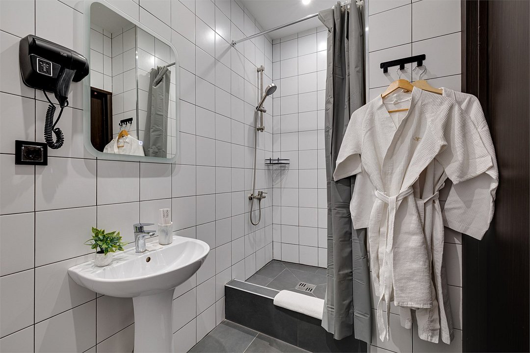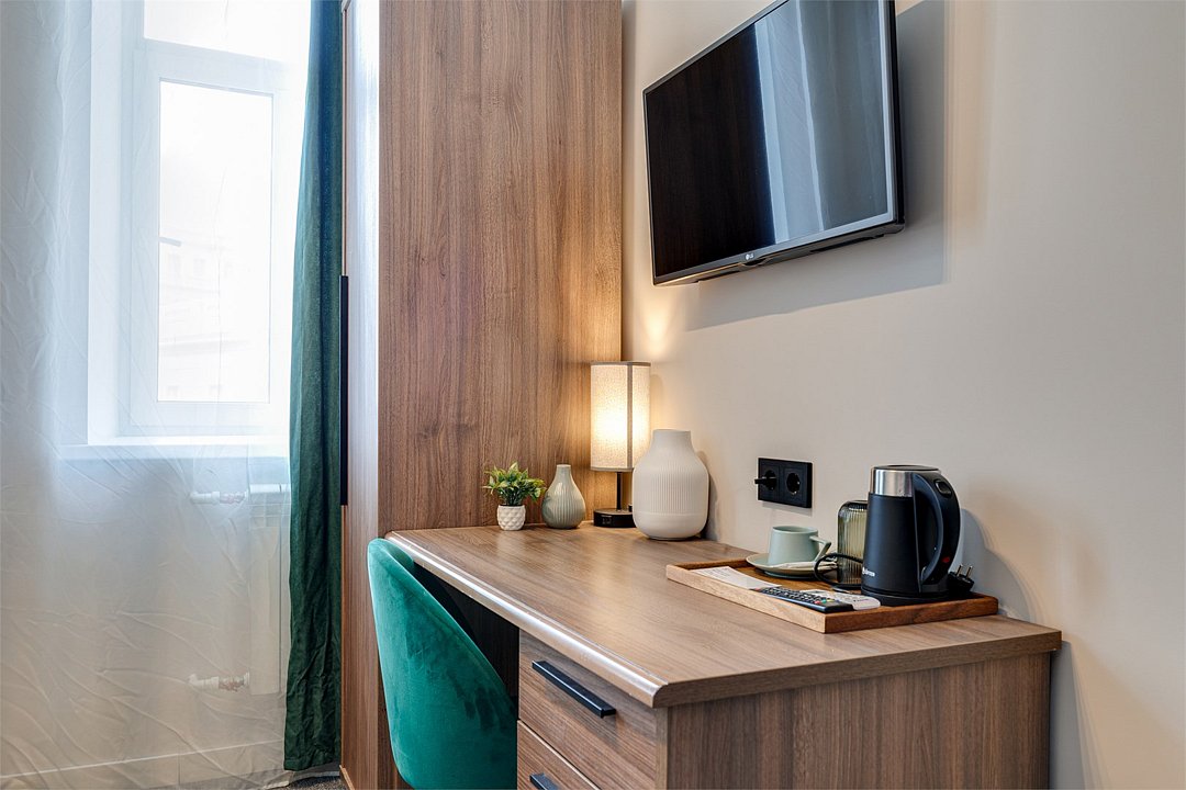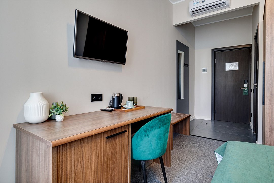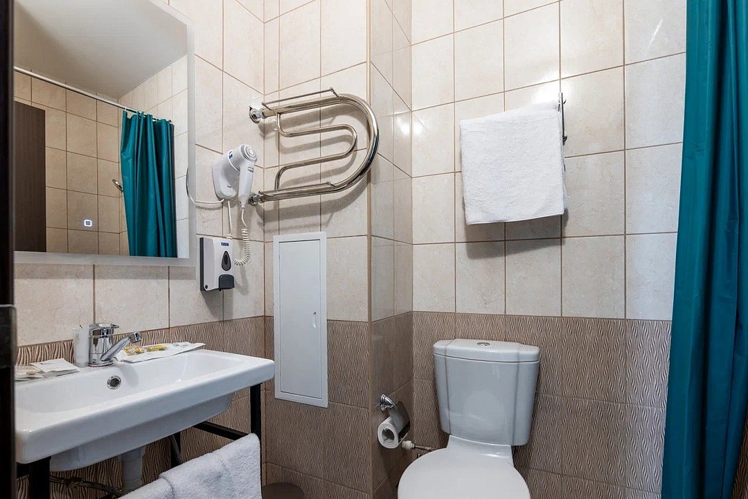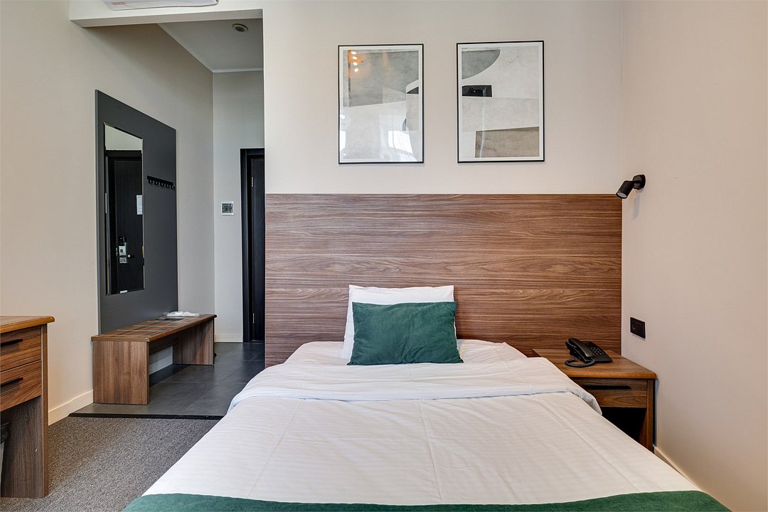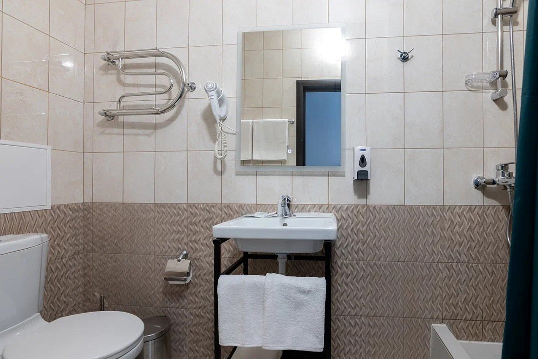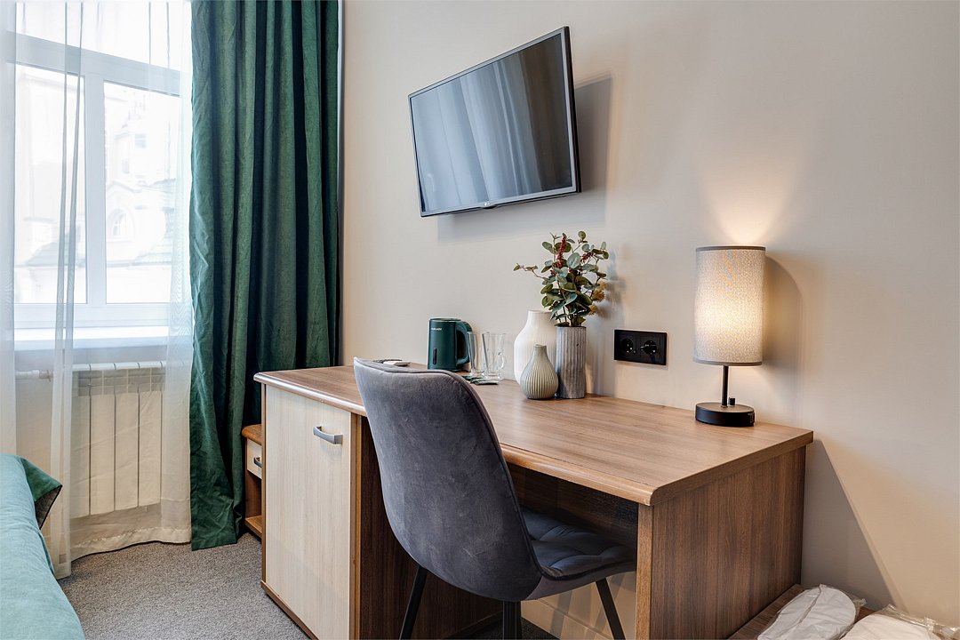 Уютный номер с видом на город, отлично подойдет для командировок и личных поездок. Удобства в номере: Рабочий стол Ковровое покрытие Москитная сетка Шкаф/гардероб Сушилка для одежды Ванная комната: Душ Фен Халат Туалетные принадлежности Тапочки Медиа и Технологии: Телефон Спутниковые каналы Телевизор с плоским экраном Услуги и Дополнения: Услуга «звонок-будильник» Полотенца Белье Вне помещения и Вид: Вид на город Бесплатный Wi-Fi во всех номерах.Услуги и удобства