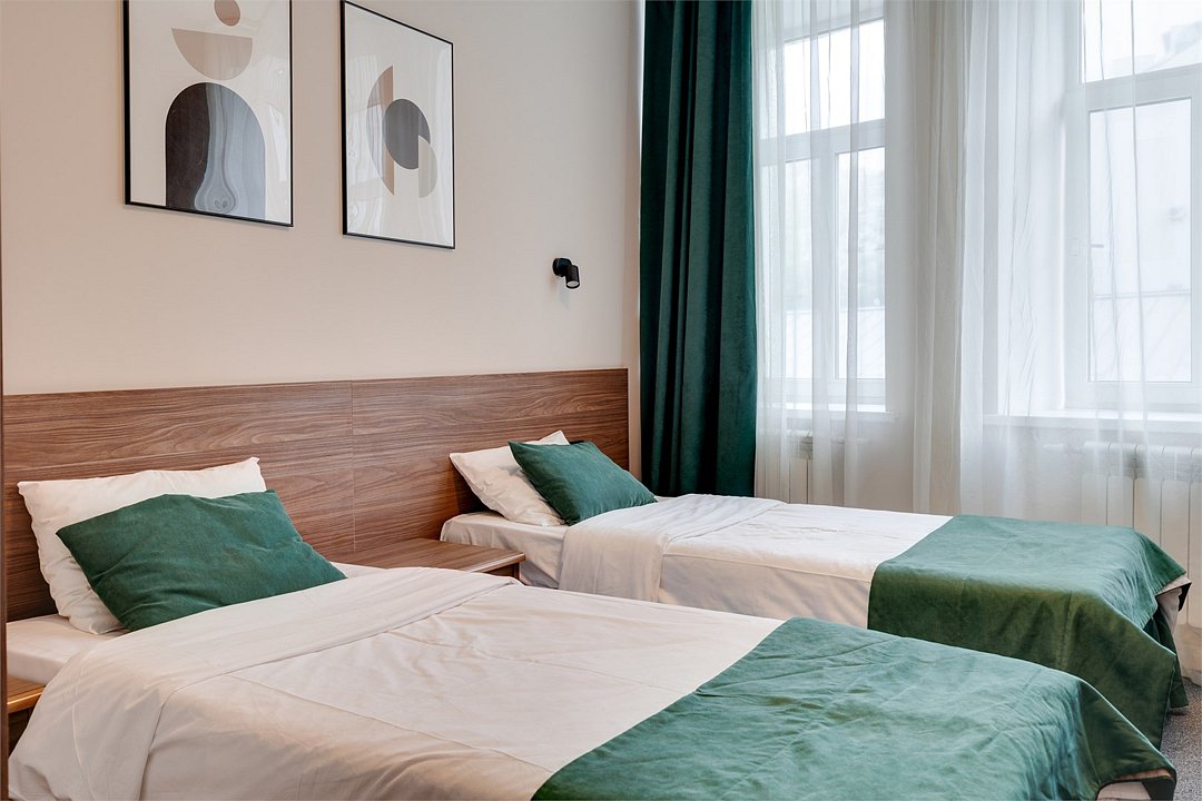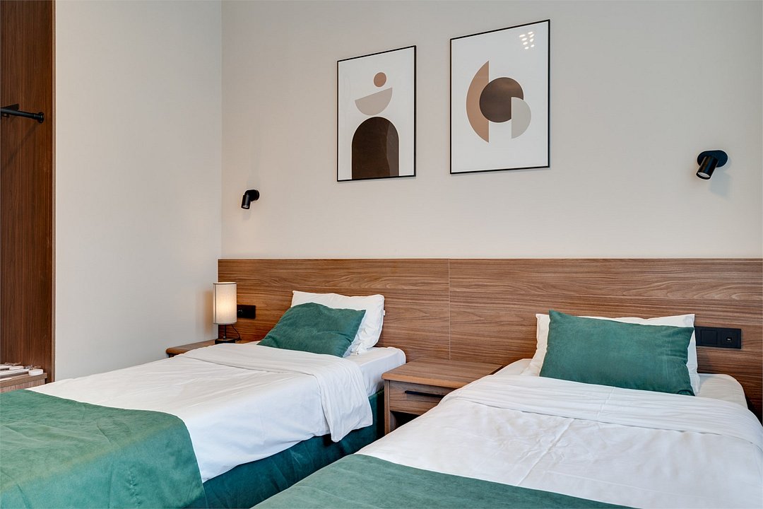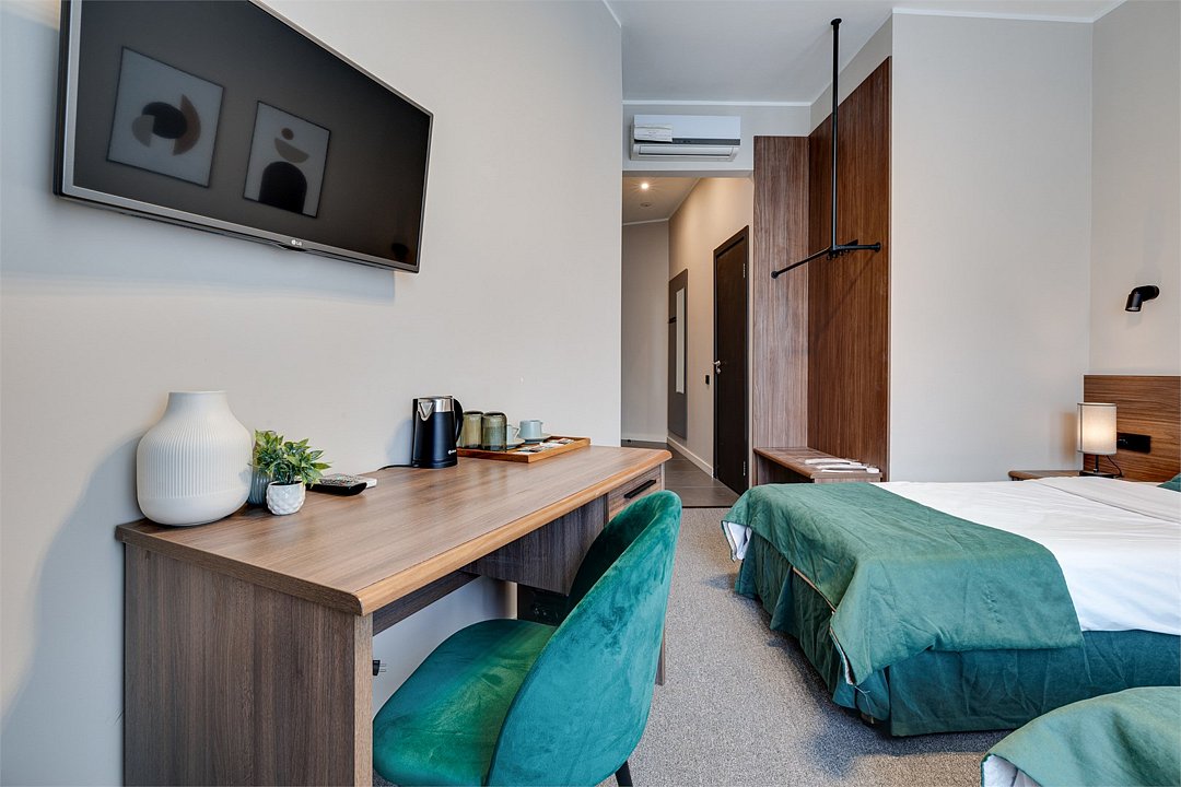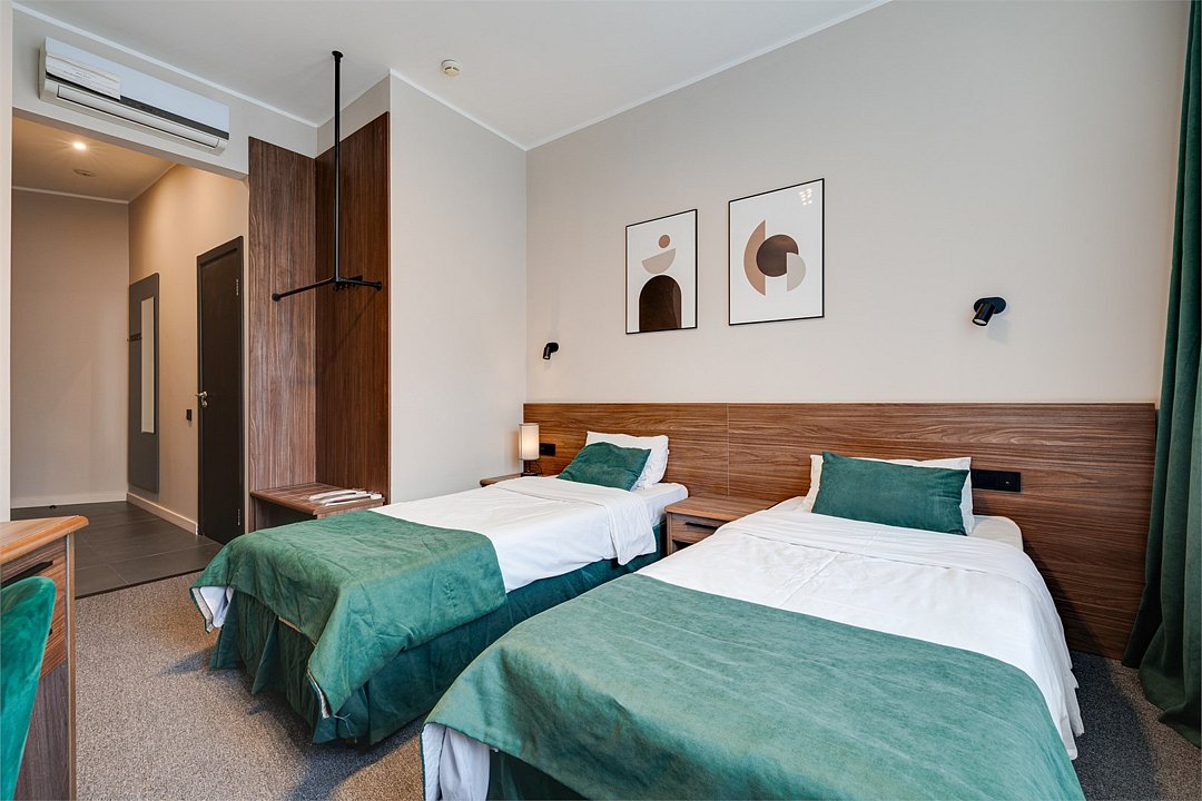 Комфортный номер, отлично подходит для друзей в туристических поездках. Удобства в номере: Рабочий стол Ковровое покрытие Москитная сетка Шкаф/гардероб Сушилка для одежды Ванная комната: Душ Фен Халат Туалетные принадлежности Тапочки Медиа и Технологии: Телефон Спутниковые каналы Телевизор с плоским экраном Услуги и Дополнения: Услуга «звонок-будильник» Полотенца Белье Вне помещения и Вид: Вид на город Бесплатный Wi-Fi во всех номерах.Услуги и удобства