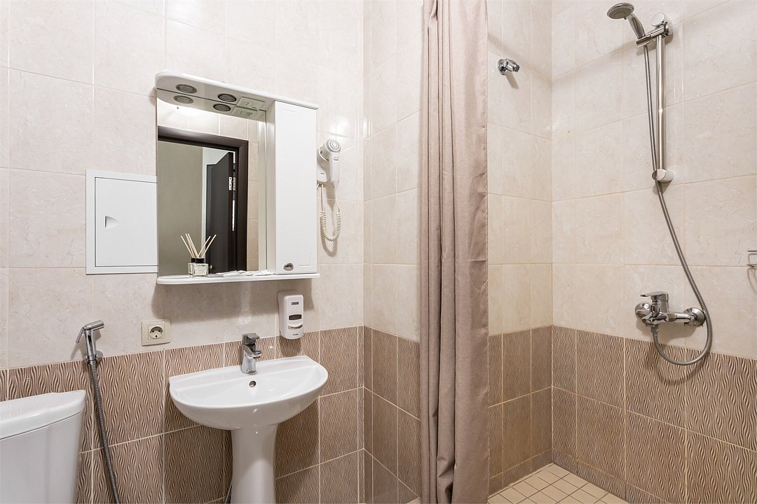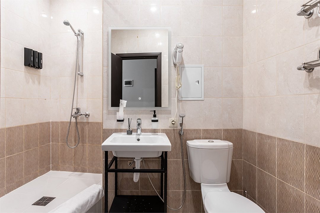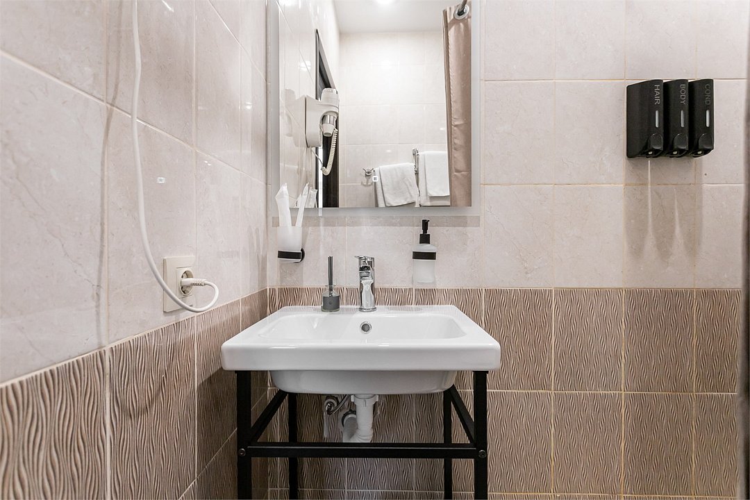 Wi-Fi, интернет, санузел, банные полотенца, тапочки, вешалки, зеркало, чайник, унитаз, раковина, душ, стул, стол, туалет, рабочий стол, мыло, прачечная (за дополнительную плату)В гостиничном номере