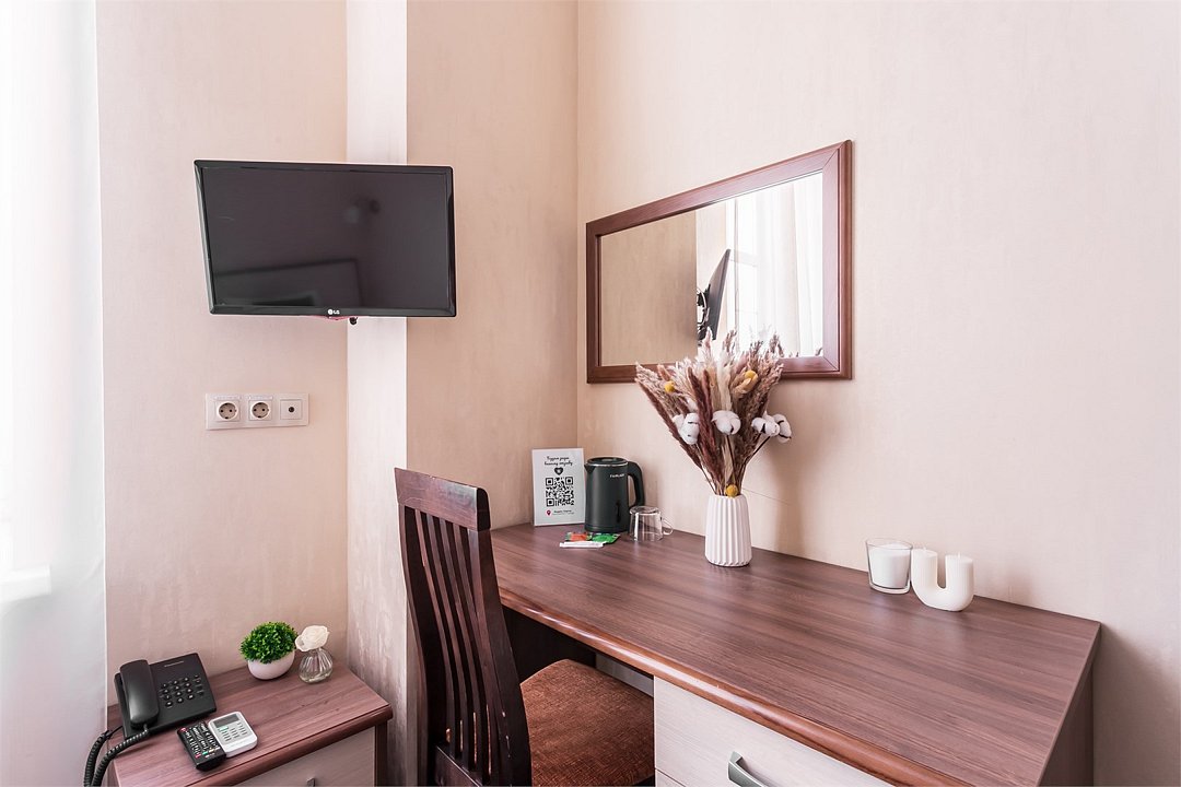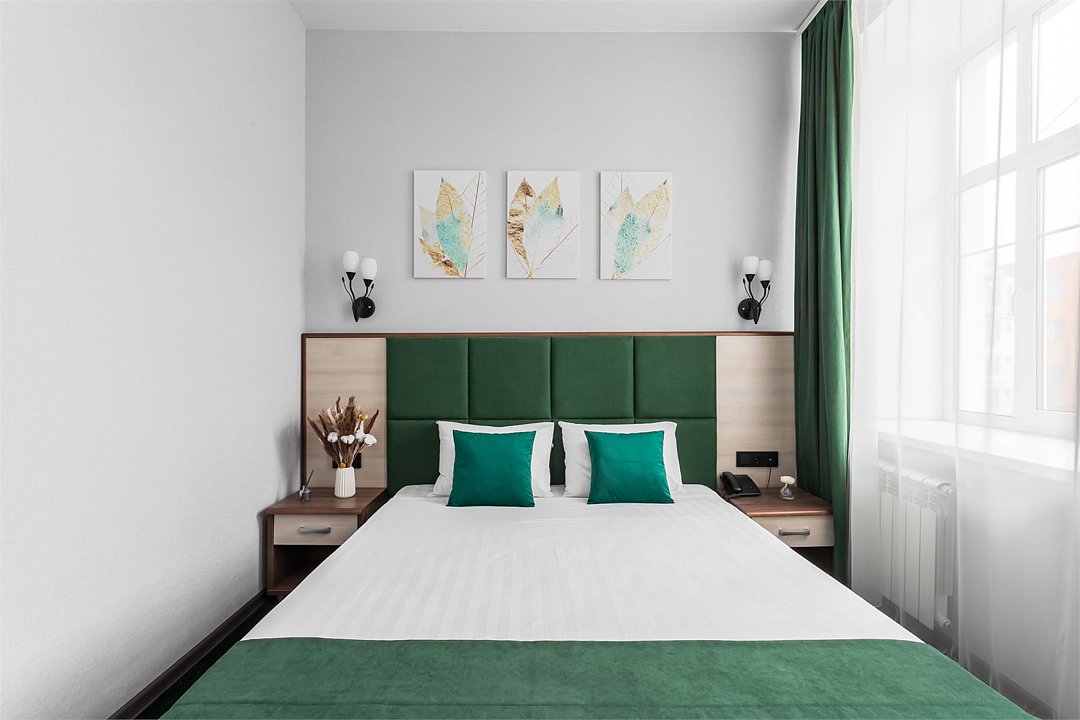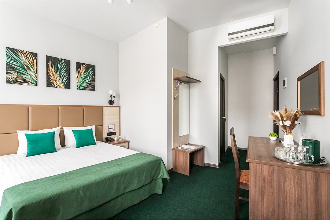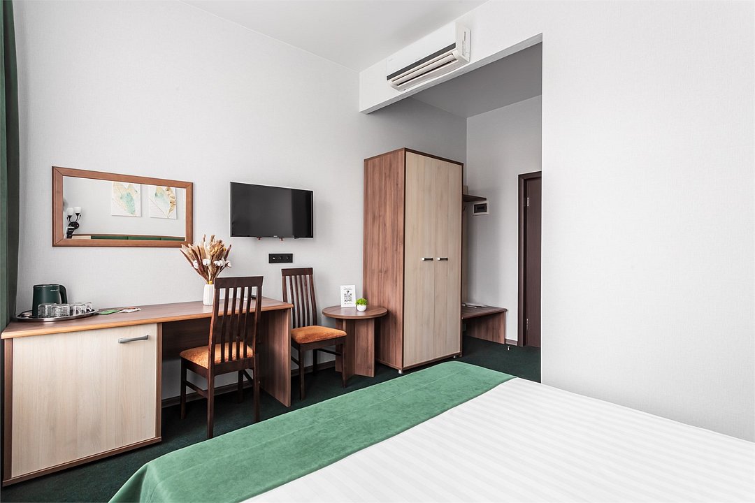 Уютный номер с видом на город, отлично подойдет для командировок и личных поездок. Удобства в номере: Рабочий стол Ковровое покрытие Москитная сетка Шкаф/гардероб Сушилка для одежды Ванная комната: Душ Фен Халат Туалетные принадлежности Тапочки Медиа и Технологии: Телефон Спутниковые каналы Телевизор с плоским экраном Услуги и Дополнения: Услуга «звонок-будильник» Полотенца Белье Вне помещения и Вид: Вид на город Бесплатный Wi-Fi во всех номерах.Услуги и удобства