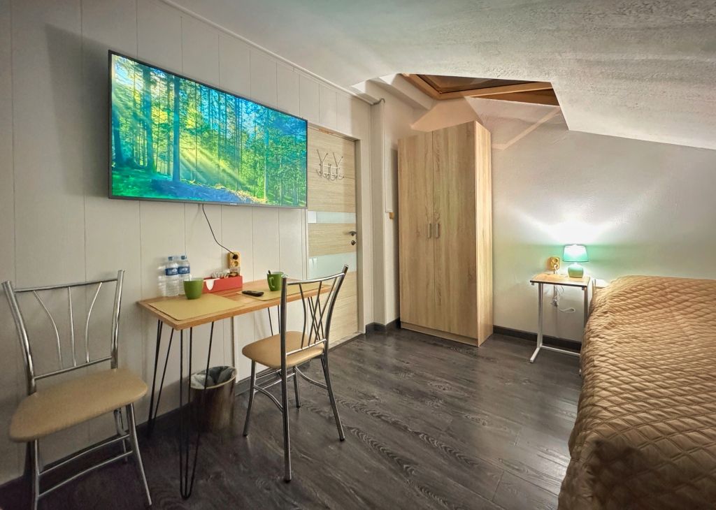 Номер уютно обставлен и оснащён необходимым, чтобы отдохнуть после долгого и насыщенного дня. Оснащение зависит от выбранной категории номера.