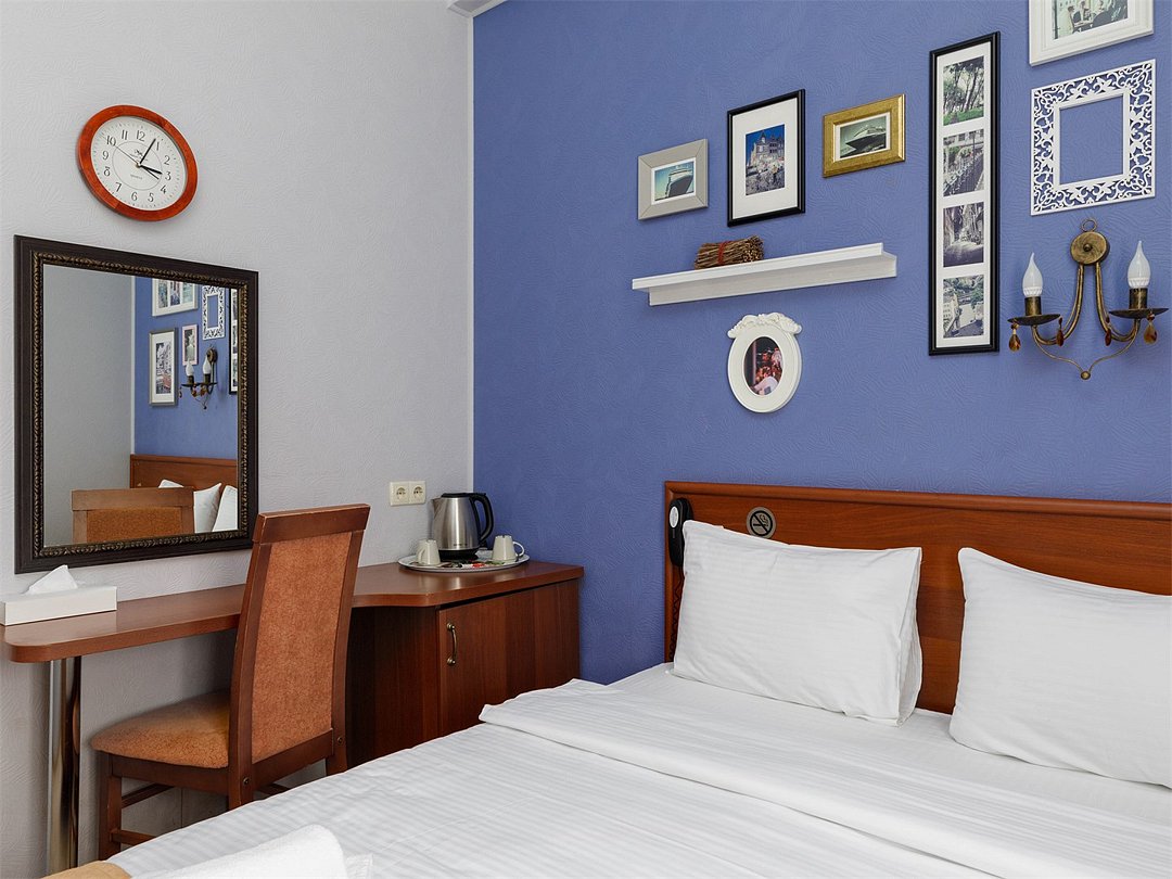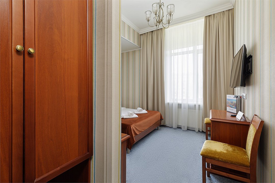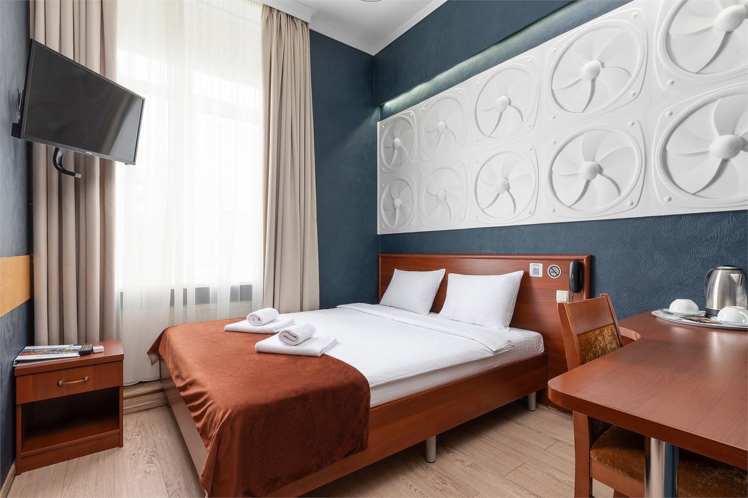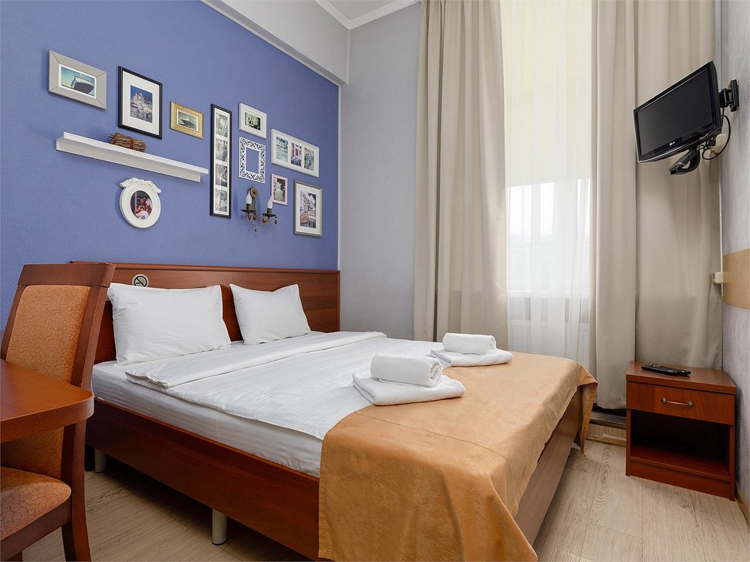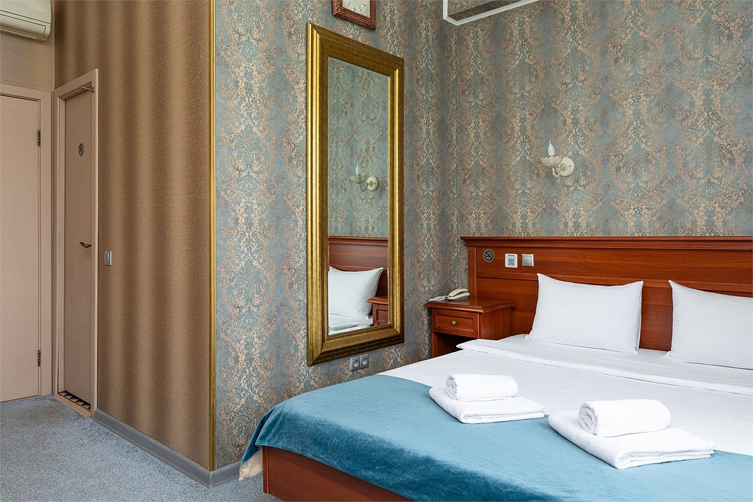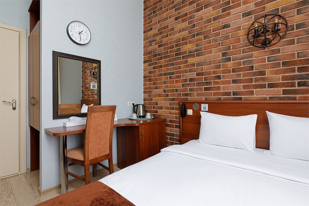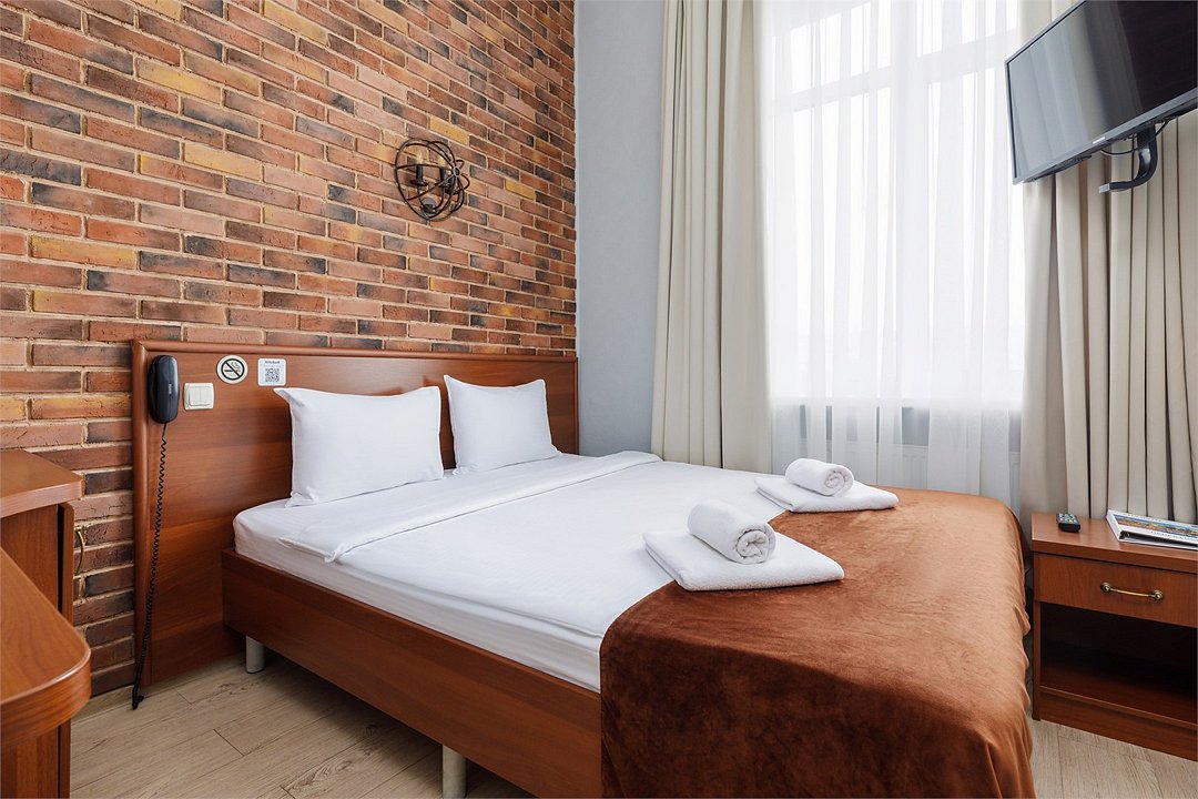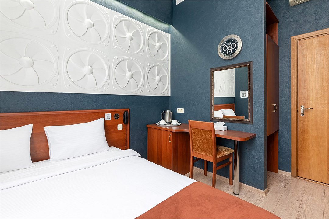 Номера категории Стандарт предлагают атмосферу комфорта и уюта, оформлены в теплых тонах и располагают к спокойному отдыху. Здесь есть все необходимое: двуспальная кровать с мягким пастельным бельем, тапочки и полотенца, прикроватное освещение и плотные ролл-шторы на окне. В каждом номере есть кондиционер, сейф, бесплатный WI-FI, телевизор с плоским экраном, электрочайник, мини-холодильник, набор посуды и чайный набор. Для связи с ресепшн имеется телефон. В ванной комнате душевая кабина, туалетно-косметические принадлежности и фен. Большинство номеров выходят окнами на Ленинградский проспект, также есть несколько номеров с окнами во двор.Услуги и удобства