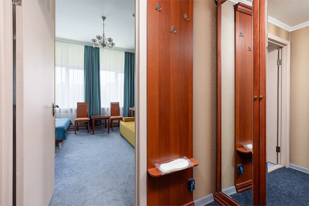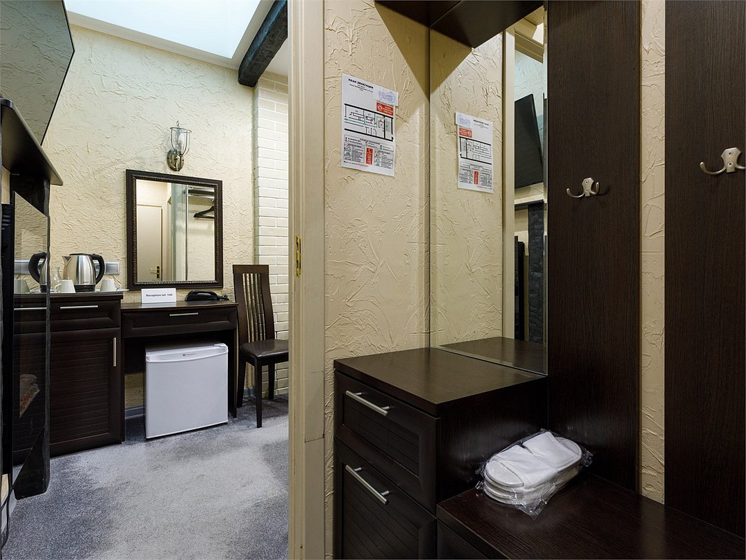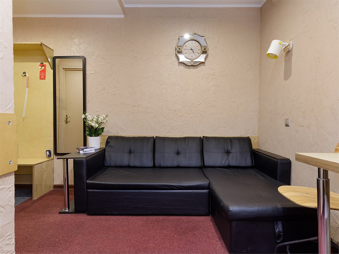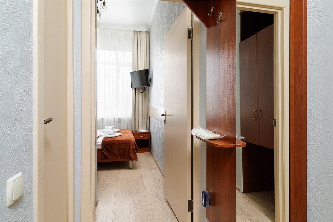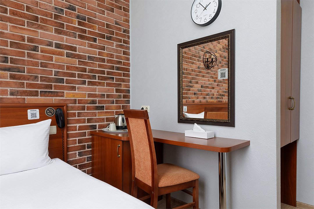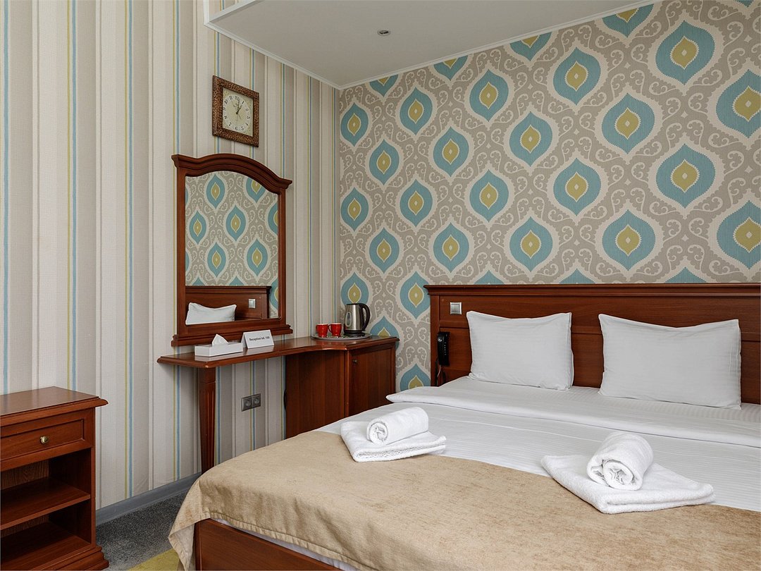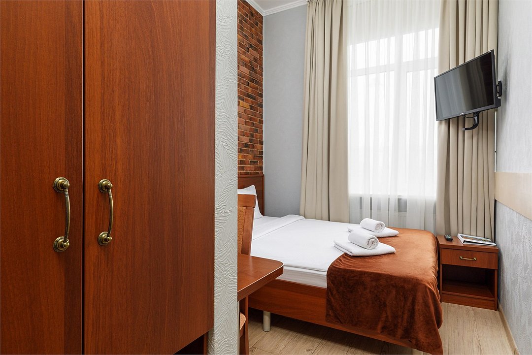Номера категории Стандарт предлагают атмосферу комфорта и уюта, оформлены в теплых тонах и располагают к спокойному отдыху. Здесь есть все необходимое: двуспальная кровать с мягким пастельным бельем, тапочки и полотенца, прикроватное освещение и плотные ролл-шторы на окне. В каждом номере есть кондиционер, сейф, бесплатный WI-FI, телевизор с плоским экраном, электрочайник, мини-холодильник, набор посуды и чайный набор. Для связи с ресепшн имеется телефон. В ванной комнате душевая кабина, туалетно-косметические принадлежности и фен. Большинство номеров выходят окнами на Ленинградский проспект, также есть несколько номеров с окнами во двор.Услуги и удобства