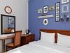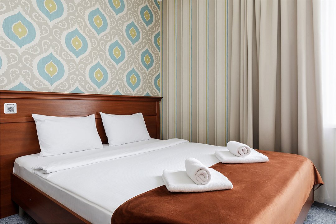 Улучшенный стандартный номер с 1 двуспальной кроватью и стильным дизайном станет отличным местом для Вашего отдыха. В каждом номере есть кондиционер, сейф, бесплатный WI-FI, телевизор с плоским экраном, электрочайник, мини-холодильник, набор посуды, чайный набор и ваза для цветов. Для связи с ресепшн имеется телефон. Двуспальная кровать с удобным матрасом и мягким пастельным бельем, тапочки и полотенца, прикроватное освещение и плотные ролл-шторы. В ванной комнате - душевая кабина, туалетно-косметические принадлежности и фен. В дополнение ко всему: для работы или учебы – стол и розетка для компьютера, чтобы везде быть вовремя – стильные настенные часы и зеркало. Шкаф для одежды и прихожая – для организации своего пространства. Здесь есть все необходимое для Вашего отдыха, восполнения сил и следующего плодотворного дня.Услуги и удобства