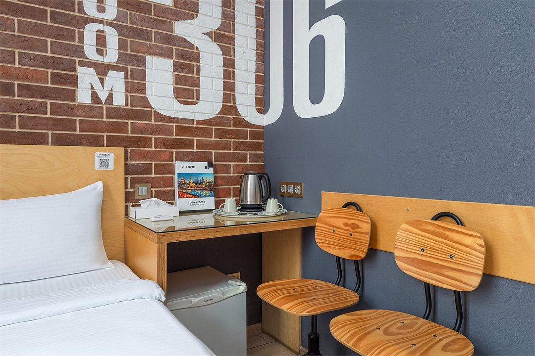 кабельное телевидение, Wi-Fi, интернет, кондиционер, светильник, фен, радио, санузел, банные полотенца, тапочки, гигиенические средства, косметические средства, две односпальные кровати, стулья, шкаф для одежды, вешалки, зеркало, чайный набор, набор посуды, информационная карта, меню, сейф, чайник, раковина, отопление, душ, вид на город, кулер на этаже, вид во двор, стаканы, столовые приборы, стол, туалет, внутренний телефон, телевизор с плоским экраном, мини-холодильник, номер для некурящих, без питомцевВ номере