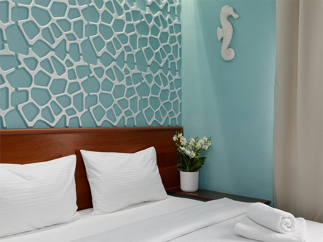 Номера категории Стандарт эконом имеют необходимое базовое оснащение для Вашего комфортного отдыха. Двуспальная кровать, полотенца, прикроватное освещение и плотные ролл-шторы на окне. В каждом номере есть кондиционер, бесплатный WI-FI, телевизор с плоским экраном, мини-холодильник. Для связи с ресепшн имеется телефон. В ванной комнате туалет, душевая кабина и фен.Услуги и удобства