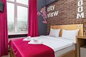 кабельное телевидение, Wi-Fi, интернет, кондиционер, светильник, фен, радио, банные полотенца, тапочки, гигиенические средства, двуспальная кровать, стулья, шкаф для одежды, вешалки, зеркало, чайный набор, набор посуды, информационная карта, меню, сейф, чайник, раковина, косметическое зеркало, обеденная зона, отопление, душ, вид на город, вид во двор, стаканы, столовые приборы, стол, тумба, туалетные средства, туалет, внутренний телефон, телевизор с плоским экраном, мини-холодильник, номер для некурящих, без питомцевВ номере