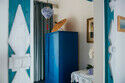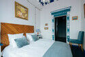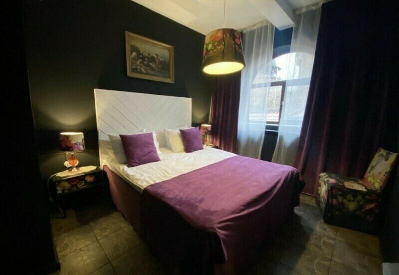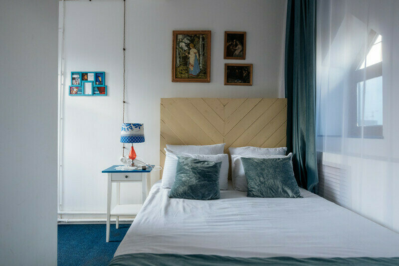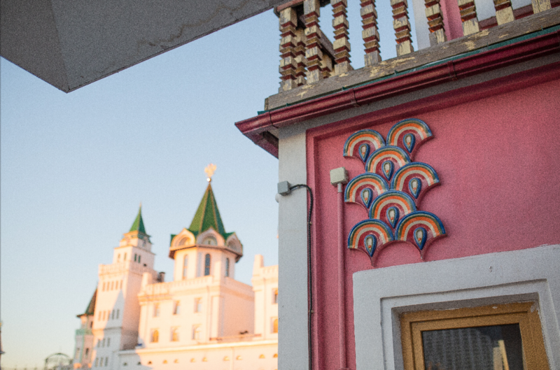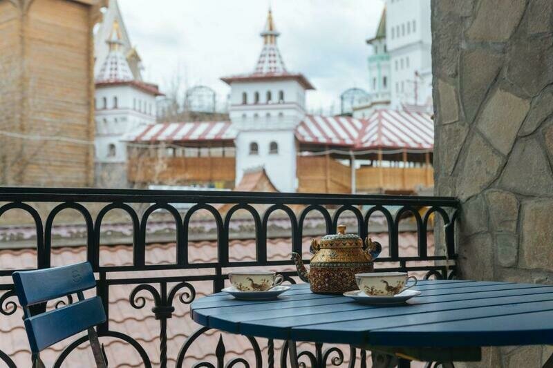 Яркое красочное здание отеля разместилось возле Измайловского Вернисажа. Из половины номеров отеля открывается вид на пруд, парк, усадьбу, из других комнат – на Измайловский Кремль, Дворец бракосочетаний, церковь и Вернисаж в Измайлово. В распоряжении гостей стандартные двухместные номера с собственной ванной комнатой и всем необходимым для комфортного проживания. Каждый номер украшен предметами старины, резными зеркалами, картинами и оформлен в определенной цветовой гамме – белой, черной, голубой, синей.