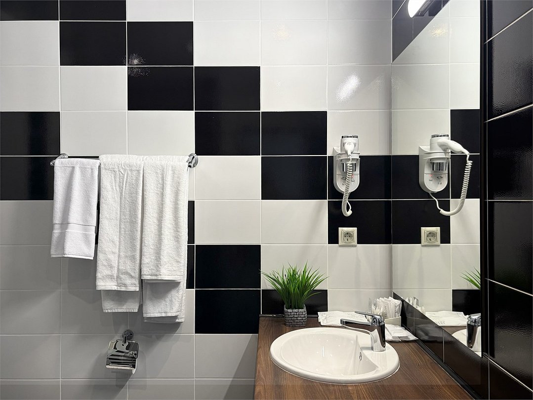 Номер с современным интерьером оборудован кондиционером, телевизором с плоским экраном, собственной ванной комнатой и рабочим местом. Идеальный выбор для тех, кто знает толк в командировках и знаком с искусством экономии. Без ущерба комфорту и отдыху вы получаете все, что необходимо.Услуги и удобства