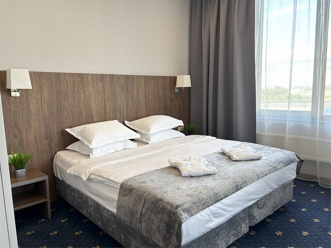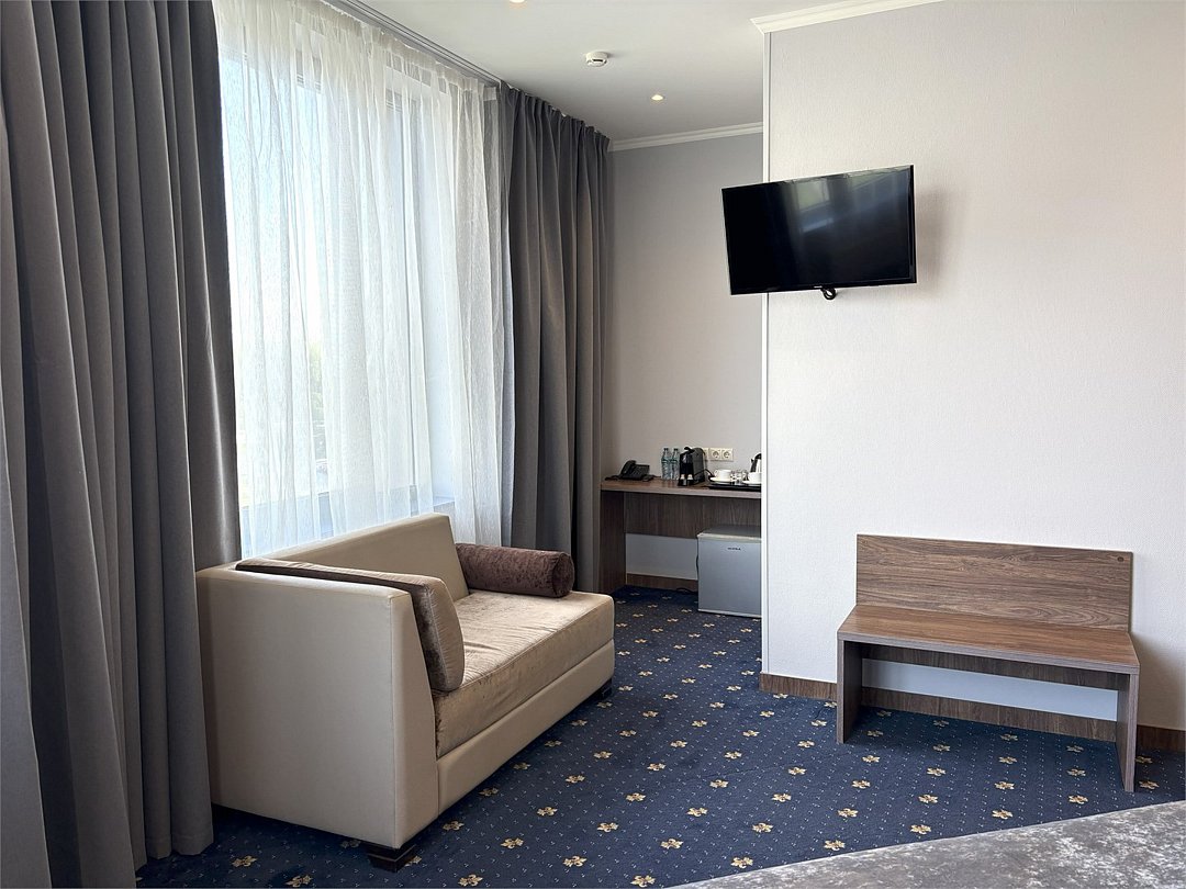 Номера повышенной комфортности с обновленным ремонтом. Просторный номер с современным интерьером и большими окнами оборудован кондиционером, телевизором с плоским экраном, собственной ванной комнатой и полноценным рабочим местом. Все номера данной категории расположены в корпусе Дельта.Услуги и удобства