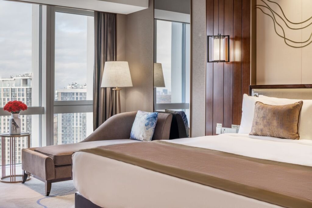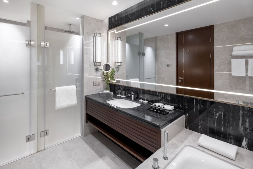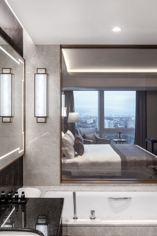 В каждом номере расположены мраморные ванные комнаты с дневным освещением, которые оснащены и душевой кабиной, и ванной. Средний размер номера категории «Премиум» – более 40 кв. м. К услугам гостей 39 люксов площадью от 63 до 373 кв. м.
