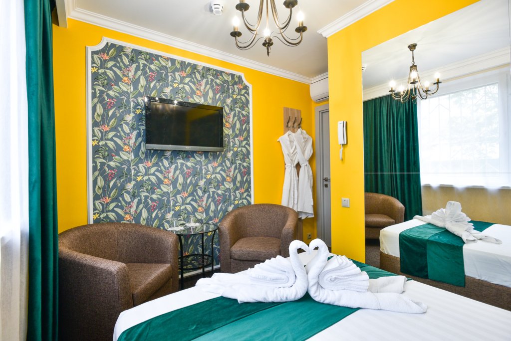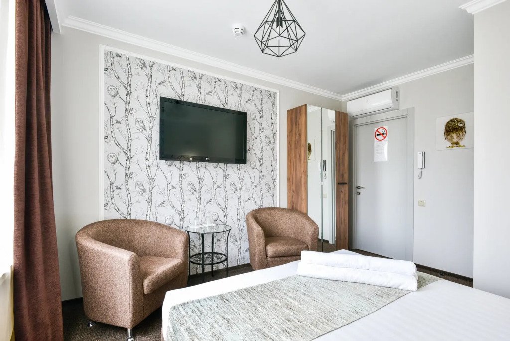 Номер уютно обставлен и оснащён необходимым, чтобы отдохнуть после долгого и насыщенного дня. Имеются телевизор, мини-бар и халат. Перечисленные услуги есть не во всех номерах.