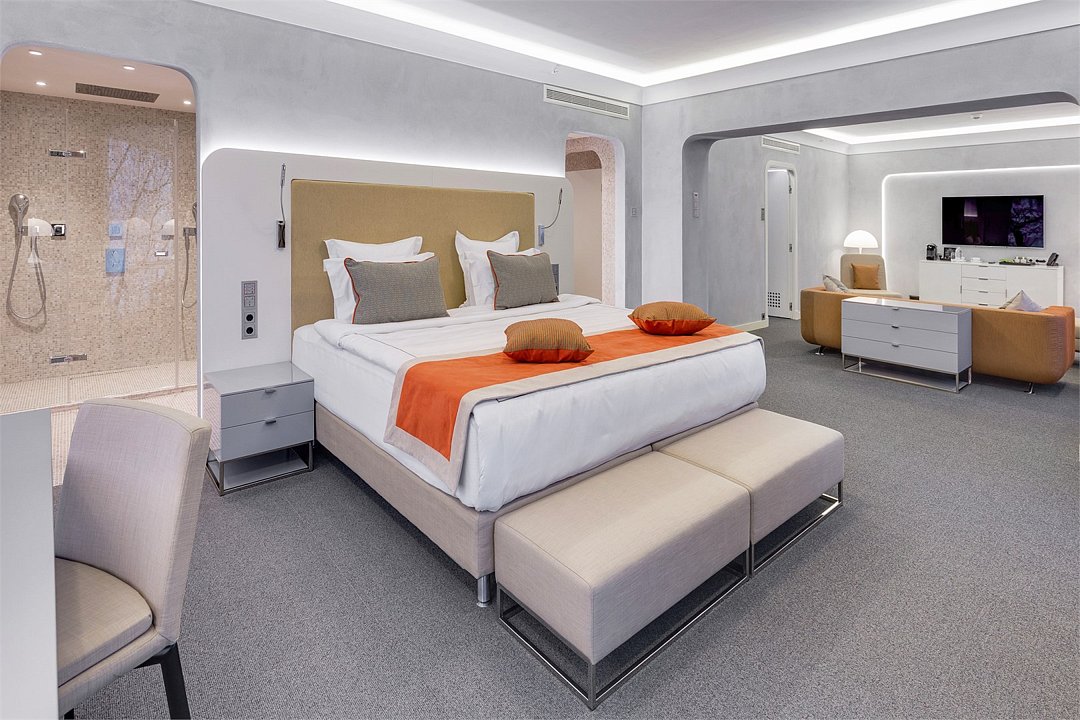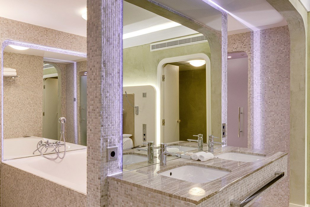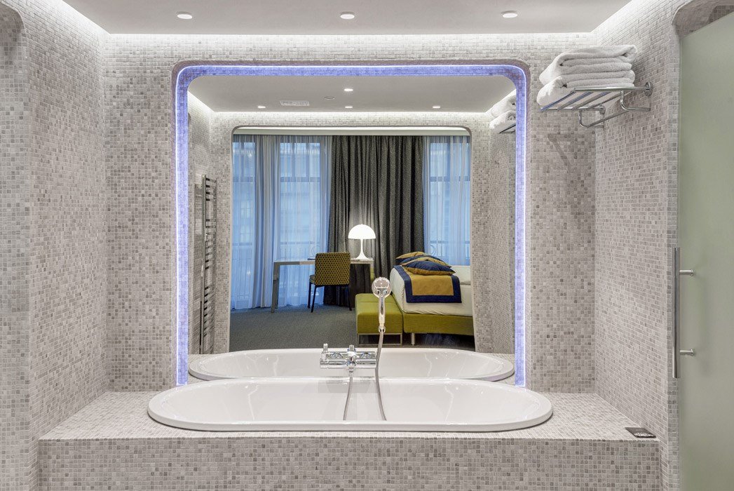 телевизор, спутниковое телевидение, Wi-Fi, IP-телефон, кондиционер, система климат-контроля, светильник, фен, весы, система безопасности, электронные замки, кофемашина, дополнительная ванная комната, биде, банные принадлежности, халаты, тапочки, кровать «King size», диван, шкаф для одежды, гардеробная, вешалки, журнальный столик, письменный стол, багажная тумба, зеркало, две комнаты, мини-бар, письменные принадлежности, обслуживание номеров, информационная карта, меню, сейф, унитаз, раковина, мягкая мебель, косметическое зеркало, гостиная зона, душ, вид на город, центральное кондиционирование, высокие потолки, меню подушек, кофейный столик, две ванные комнаты, стул, туалетный столик, туалетные средства, панорамные окна, мини-холодильник, номер для некурящих, электронный консьерж 24/7, средства индивидуальной защиты, фитнес-зона, чайная станция, туалетные принадлежности премиум-класса, бутилированная вода, можно с питомцамиВ гостиничном номере