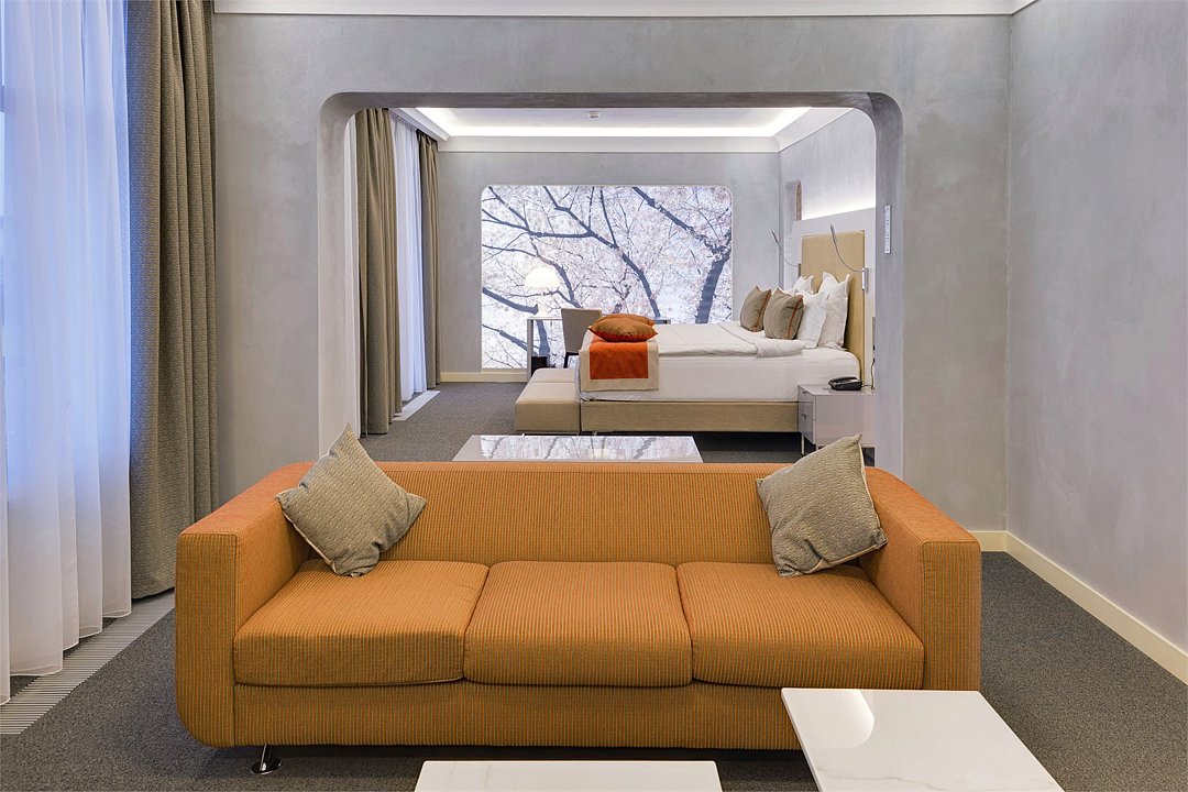 Просторные номера категории Deluxe площадью от 36 кв.м располагают всеми необходимыми удобствами для комфортного отдыха. Номера, выходящие окнами на московский дворик, гарантируют умиротворение и тишину в самом центре Москвы. Особую ценность номерам Deluxe придают уникальные ретрофутуристичные картины художника Станислава Трацевского. * Номер «Делюкс» соответствует категории «Джуниор Сюит» согласно Положению о классификации гостиниц, утвержденного Постановлением Правительства № 1860 от 22.11.2020 гУслуги и удобства