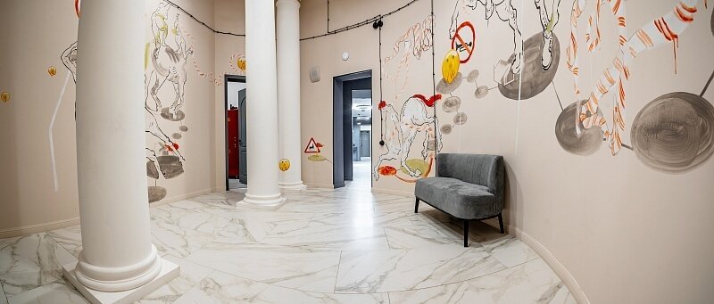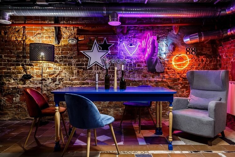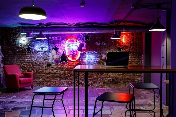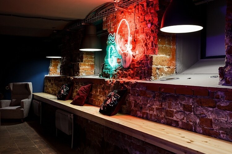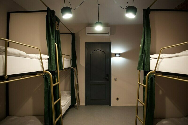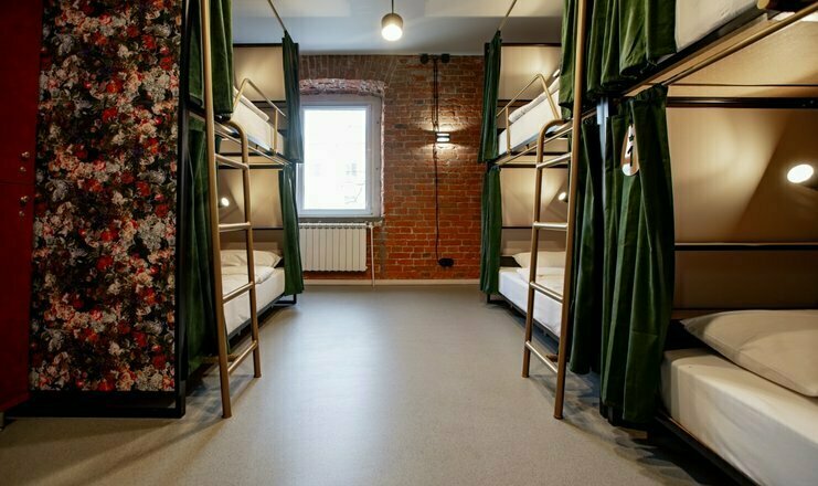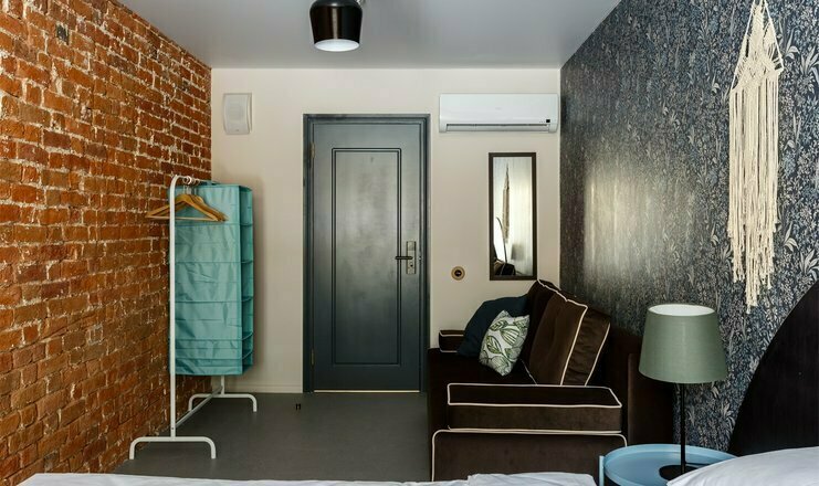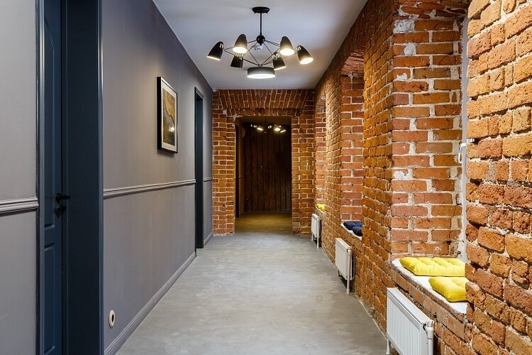 Интерьер сочетает в себе стильный серьёзный лофт и нотки романтизма, выражающиеся в цветочных принтах на фоне кирпичных стен и лёгких бумажных конструкциях, украшающих прекрасную люстру в холле. Есть несколько вариантов размещения постояльцев — как двухместные или семейные номера, так и номера на большое количество гостей, что даёт возможность подобрать комнату на любой вкус и кошелёк. Весь хостел оснащён комфортной современной мебелью и техникой, общий душ оформлен в соответствии с остальным интерьером, а просторная зона отдыха вместит любую компанию.