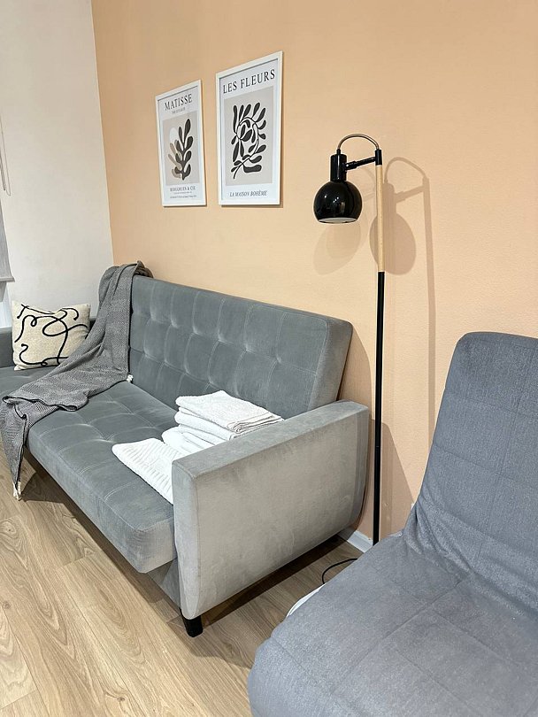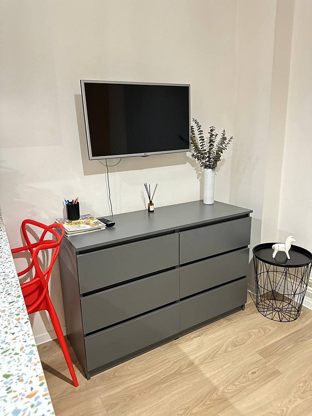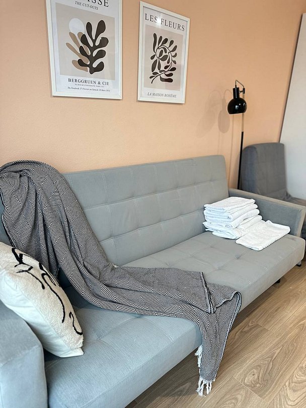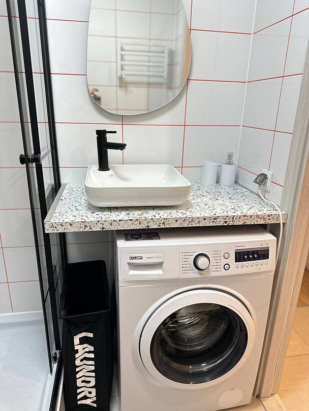 Квартира полностью укомплектована для комфортного пребывания и включает удобные спальные места и свежее постельное белье, кухню, оснащенную бытовой техникой и набором посуды, телевизор и Wi-Fi, стиральную машину, современный санузел с душем и гигиеническими принадлежностями.