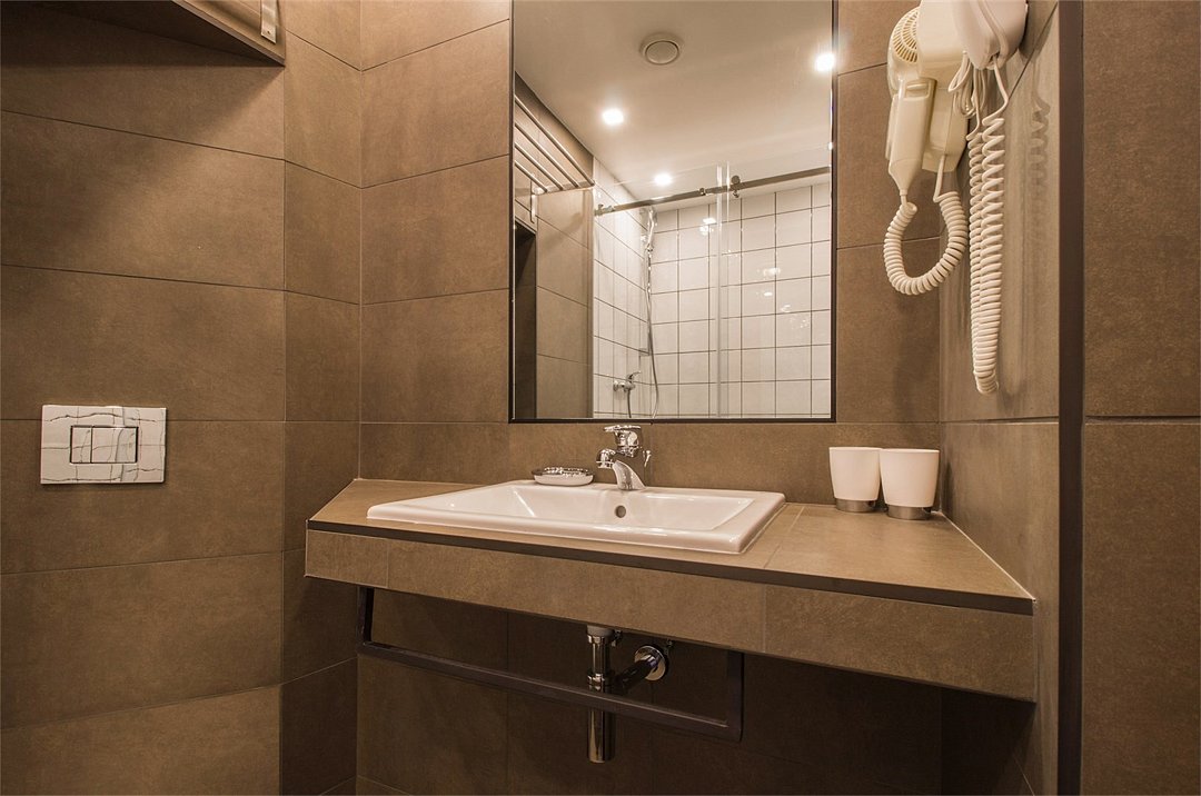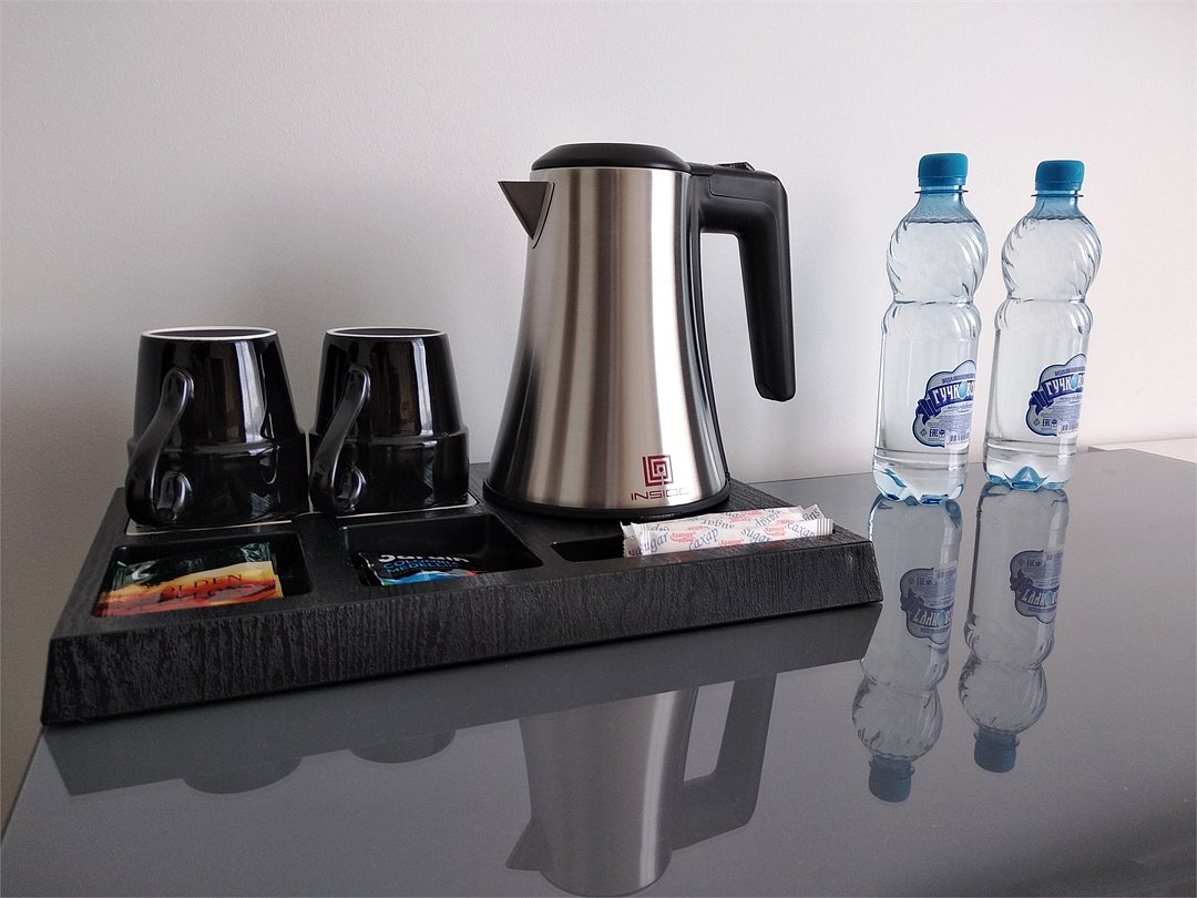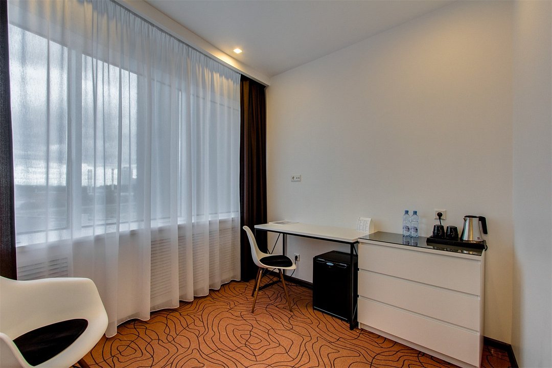 Wi-Fi, телефон, кондиционер, светильник, фен, электронные замки, ванная комната, ванна или душевая кабина, банные полотенца, тапочки, гигиенические средства, косметические средства, кровать «King size», стулья, шкаф для одежды, вешалки, письменный стол, зеркало, чайный набор, набор посуды, обслуживание номеров, сейф, чайник, раковина, ковровое покрытие, отопление, вид на город, стаканы, столовые приборы, туалет, цифровое тв, внутренний телефон, телевизор с плоским экраном, мини-холодильник, без питомцевВ гостиничном номере