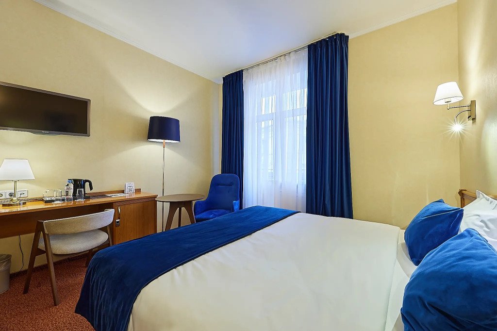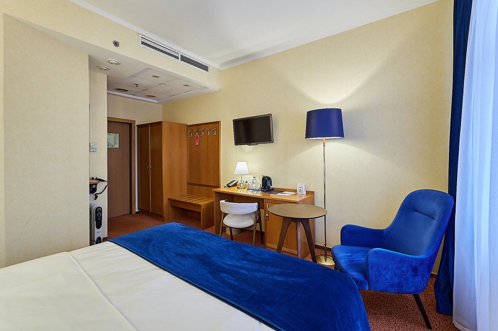 Из окон 79 номеров открывается панорама Москвы. Все номера оформлены в спокойных тонах и обставлены удобной мебелью. В индивидуальных ванных комнатах предоставляются бесплатные туалетные принадлежности. Вечером вы можете посмотреть телевизор или воспользоваться бесплатным Wi-Fi.