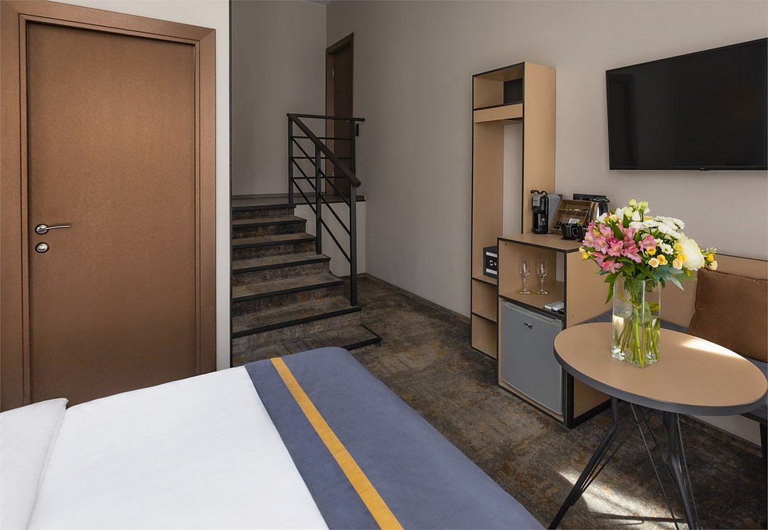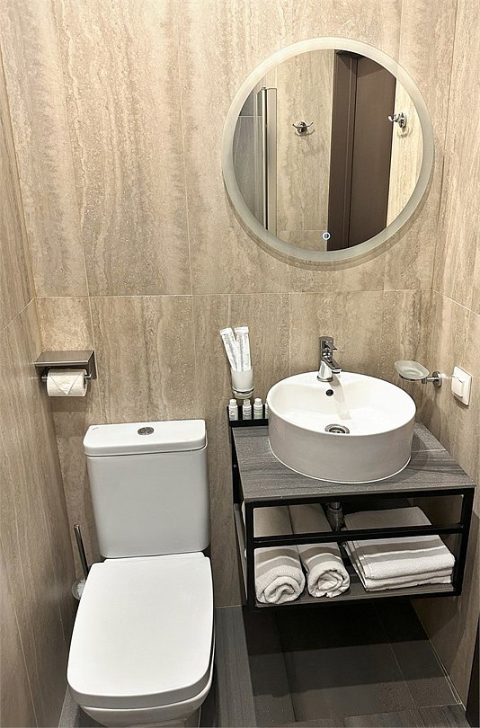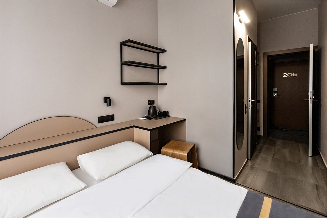 Очень хороший чистый номер. Много розеток. В номере есть чайник, чашки, телевизор над кроватью. Кровать не скрипит. Удобные подушки. В туалете два рулона туалетной бумаги, одноразовые зубные щётки, шампунь и мыло. Есть маленький фен. Большое, маленькое и ножное полотенце. Всё в двух экземплярах. Есть небольшой минус со звукоизоляцией: в соседнем номере ночью и утром громко занимались сексом, скорее всего втроём. Девушка была очень громкой. У нас тоже был потрясающий секс, но надеюсь, что нас было не так слышно.
