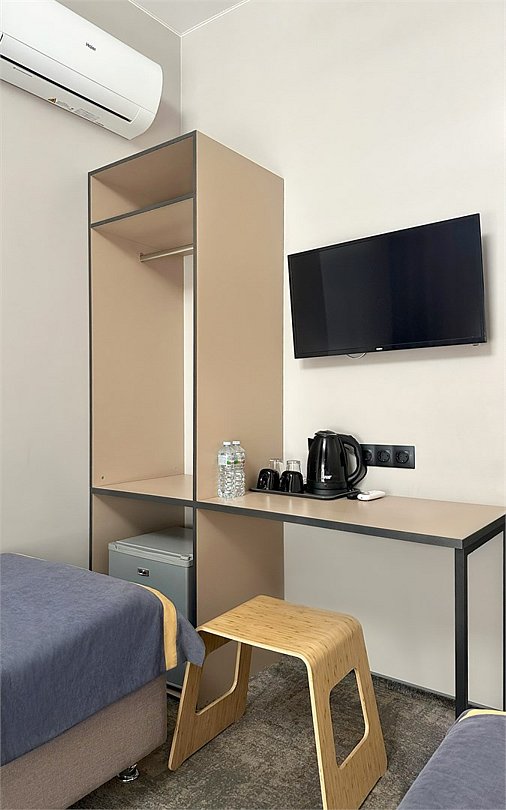 Уютный однокомнатный номер с кондиционером, выполненный в спокойной цветовой гамме, располагает к отдыху после долгих экскурсий и насыщенного дня. Каждый номер оборудован собственной ванной комнатой с душем. Каждому гостю предоставляются туалетные принадлежности, полотенца и тапочки.Услуги и удобства