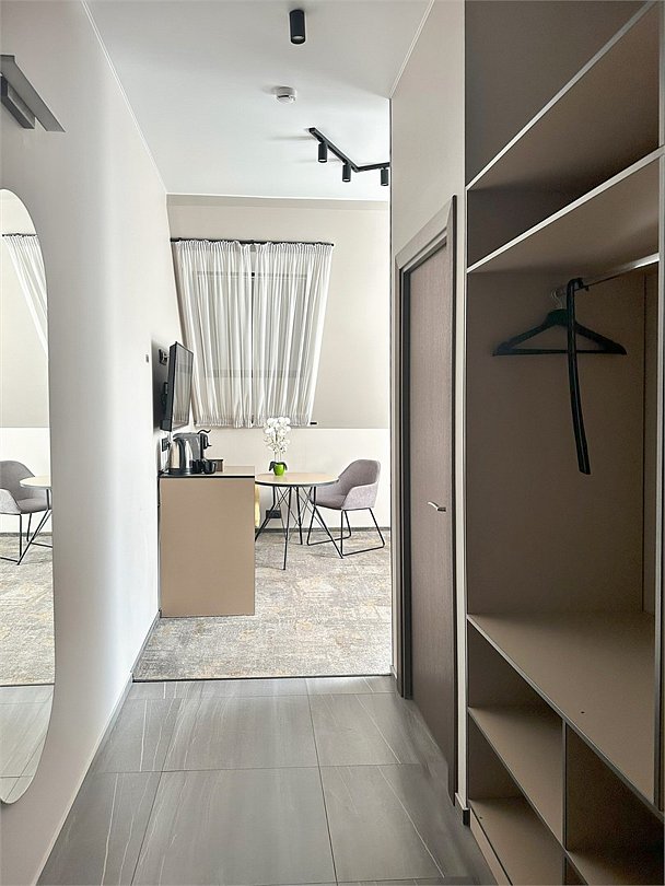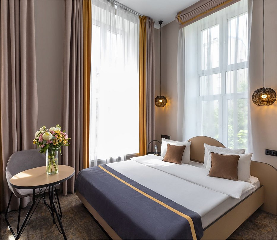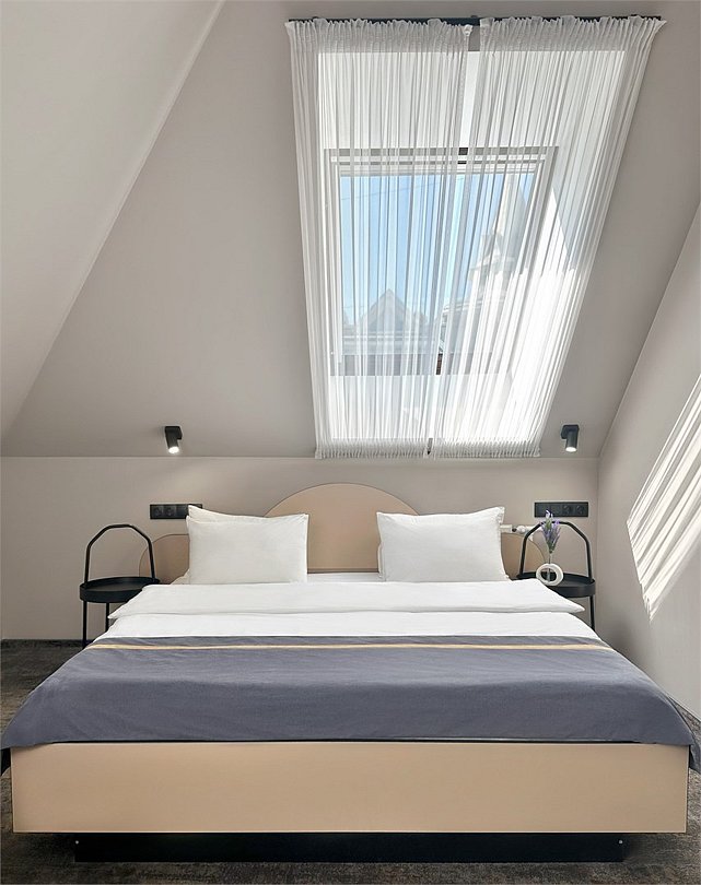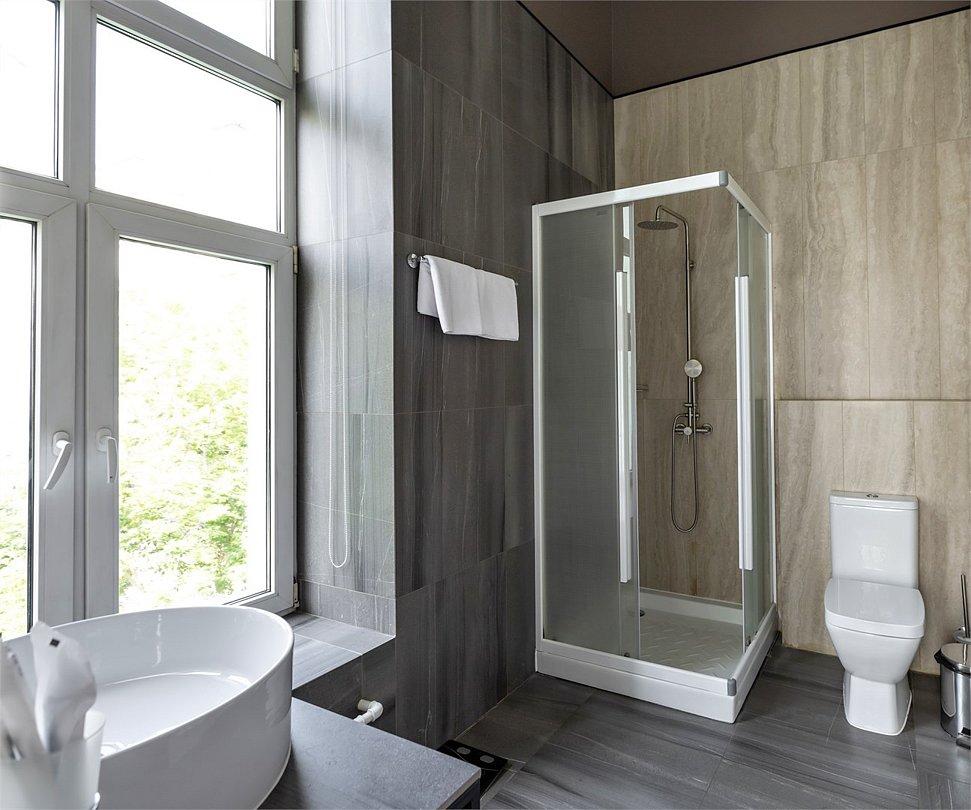Большой номер с лаконичным и стильным дизайном, позволяющий комфортно разместиться гостям. В номере есть все необходимое для полноценного отдыха и для плодотворной работы. Каждый номер оборудован собственной ванной комнатой с большой душевой кабиной. Каждому гостю предоставляются туалетные принадлежности, полотенца и тапочки.Услуги и удобства