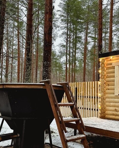 Кухня-студия с диваном, в спальне: 2-х спальная кровать и односпальная кровать. Санузел, умывальник, душ в номере. ТВ, микр.печь, холодильник ,плита, столешница с посудой, панорамные окна и т.д. Собственная терраса. Всего в отеле 2 таких номера: №1 и №2, но они абсолютно одинаковые.
