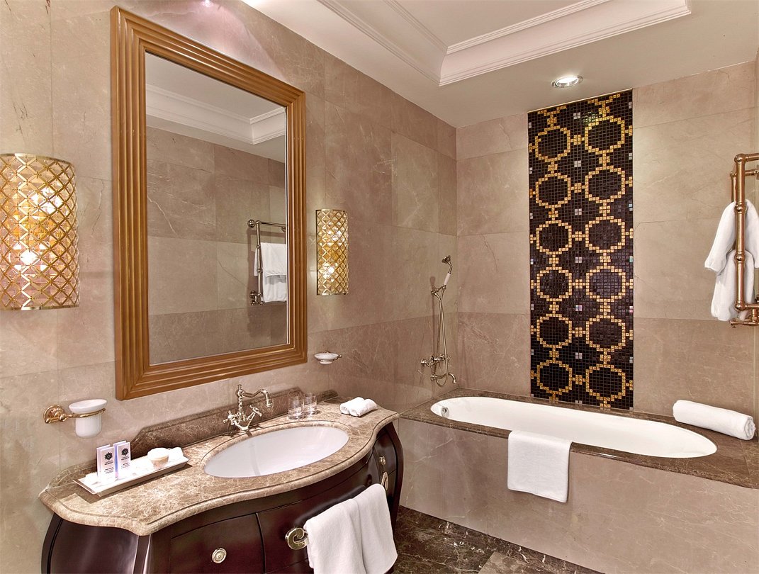 телевизор, кабельное телевидение, Wi-Fi, интернет, телефон, кондиционер, светильник, настольные лампы, фен, электронные замки, кофемашина, утюг, ванная комната, ванна, биде, теплый пол, банные принадлежности, халаты, банные полотенца, тапочки, косметические средства, кровать «King size», диван, шкаф для одежды, вешалки, журнальный столик, письменный стол, зеркало, мини-бар, обслуживание номеров, сейф, чайник, ковровое покрытие, душ, вид на город, кресло, вид во двор, стул, тумба, туалетные средства, туалет, номер для некурящих, бутилированная водаВ гостиничном номере