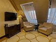 Насладитесь роскошью и приятной обстановкой мансардного люкса, который расположен на верхних этажах отеля. Мансардный люкс - это особое пространство, созданное для тех, кто ценит роскошь и комфорт. Когда вы войдете в номер, вас встретит ощущение простора благодаря необычным потолкам и оригинальному дизайну, где сочетаются классические и современные элементы. При оформлении мансардного люкса было уделено внимание каждой детали. Просторная спальня обставлена изысканными мебелью и элементами декора, которые создают атмосферу роскоши и уюта. Рядом с главной спальней находится отдельная гостиная, где вы можете отдохнуть, почитать книгу или пообщаться с гостями. В ванной комнате предусмотрены как ванна, так и душевая кабина, для вашего максимального комфорта.Услуги и удобства