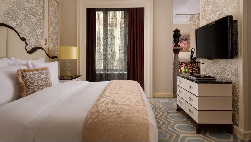 Стиль и изысканность дизайна являются визитной карточкой люксов St. Regis. Эти великолепные двухкомнатные люксы создают атмосферу элегантности и роскоши. Уютная спальня и просторная гостиная оформлены в благородной палитре алых, бежевых и серых тонов, создающих атмосферу тепла и изысканности. В ванной комнате предусмотрены как ванна, так и душевая кабина, для вашего максимального комфорта. Идеальное пространство для тех, кто ценит безупречный сервис и непревзойденный уровень гостеприимства.Услуги и удобства