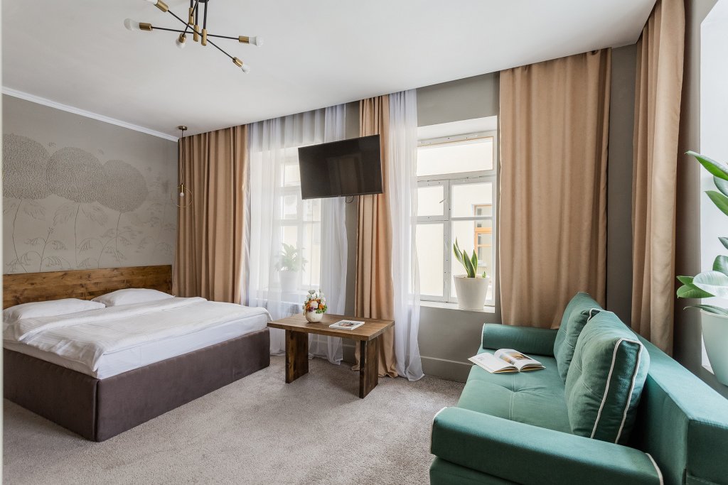 В номерах повышенной категории предоставляются халаты, персональный чайник и питьевая вода, а также дополнительные спальные места.
