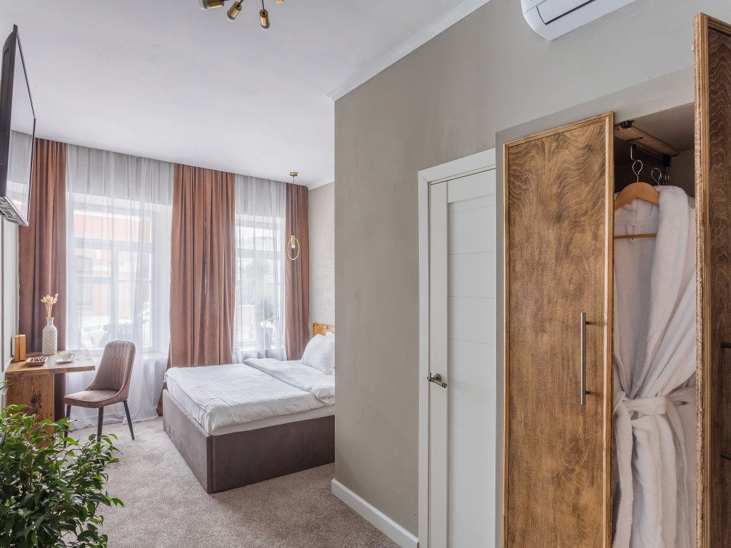 В каждом номере есть: двуспальная кровать с натуральным постельным бельём из лиоцеллы, рабочая зона, ванная комната с ванными принадлежностями, кондиционер, телевизор и бесплатный Wi-Fi.