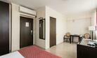 Здание состоит из 15 этажей, по которым ходит лифт. Номерной фонд начинается с одноместных Стандартов и заканчивается двухместными Люксами. Даже в самом бюджетном номере в уборной находится ванна или душ, а в главной комнате установлен телевизор, холодильник и мини-бар. Интерьеры оформлены в мягких, неброских тонах, создающих расслабляющую атмосферу.
