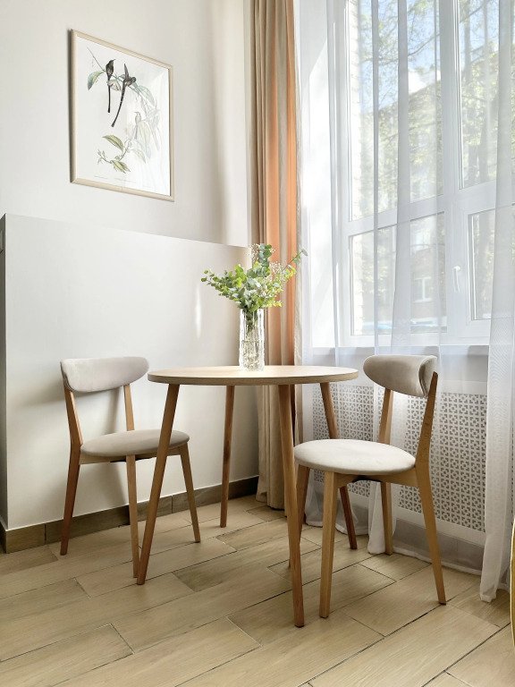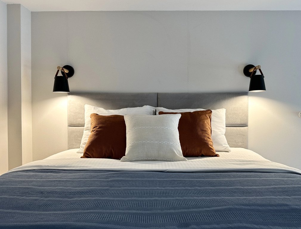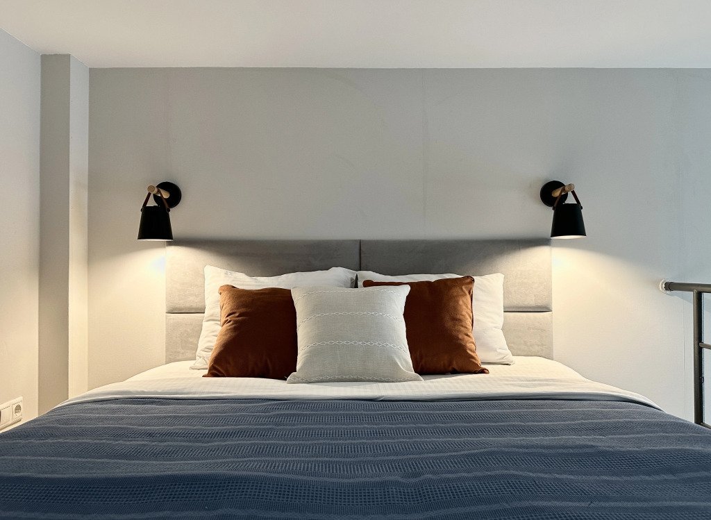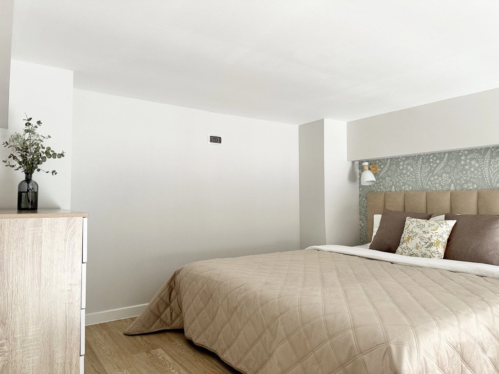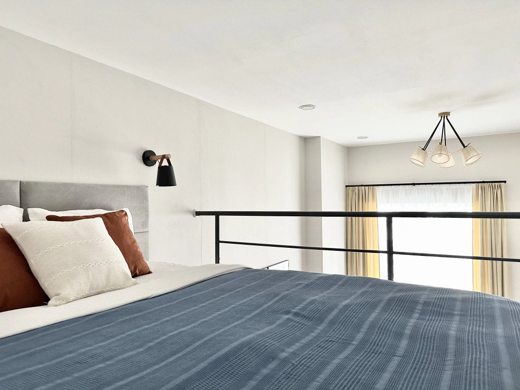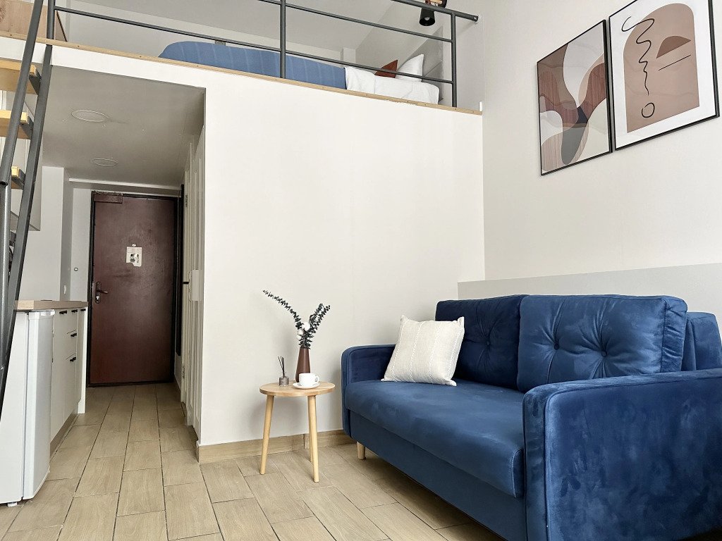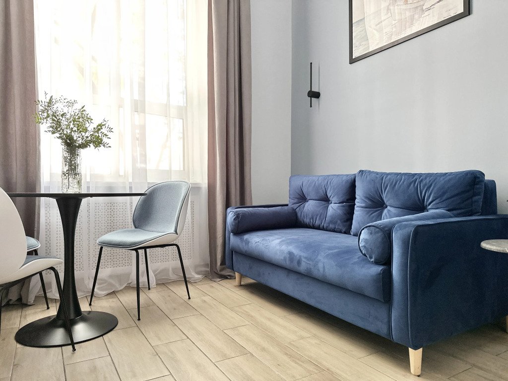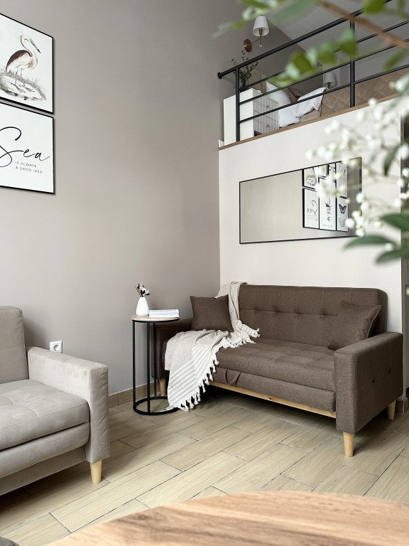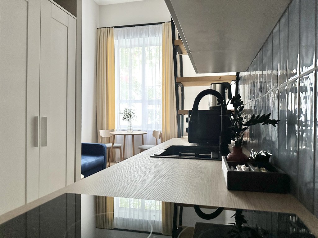 Все апартаменты имеют два уровня, на втором уровне, располагается спальня с ортопедическим основанием матрасом 160Х200, на первом уровне кухня и гостиная зона с мягким диваном-кроватью или креслом-кроватью и телевизором. Современная душевая с раковиной и санузлом. В апартаментах для пользования гостей: полотенца, постельное бельё, чай, кофе, сахар. В санузле: туалетно-косметические принадлежности, фен. Также есть кухня с плитой, всей необходимой посудой, холодильником, микроволновкой и чайником.