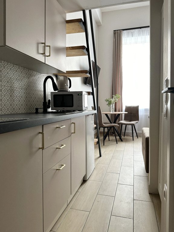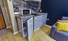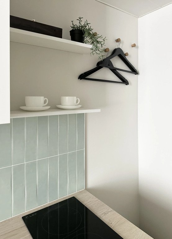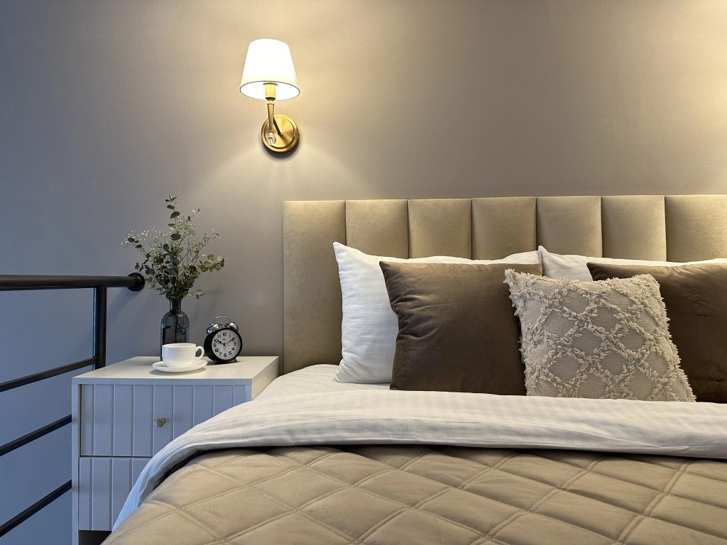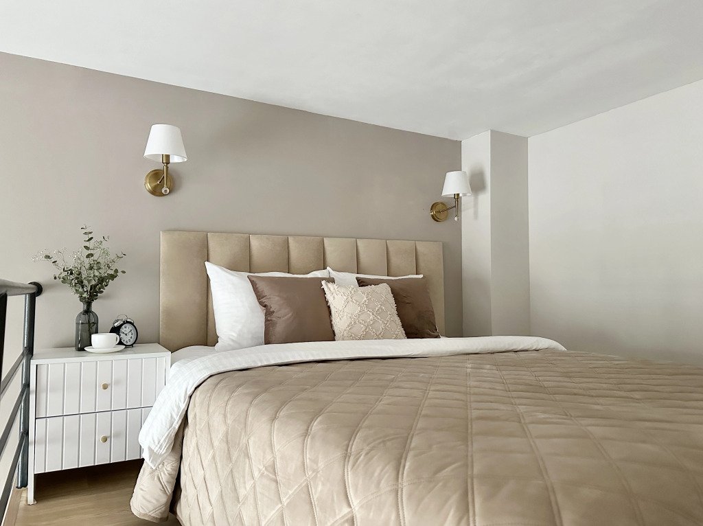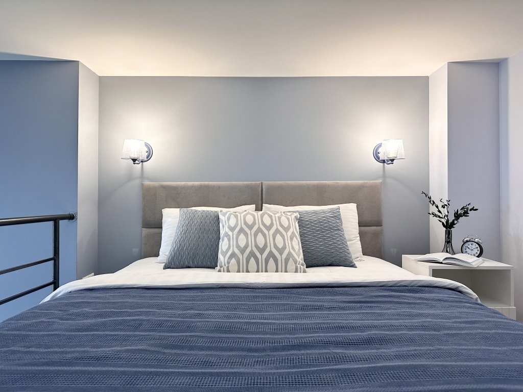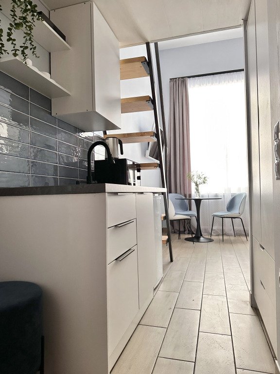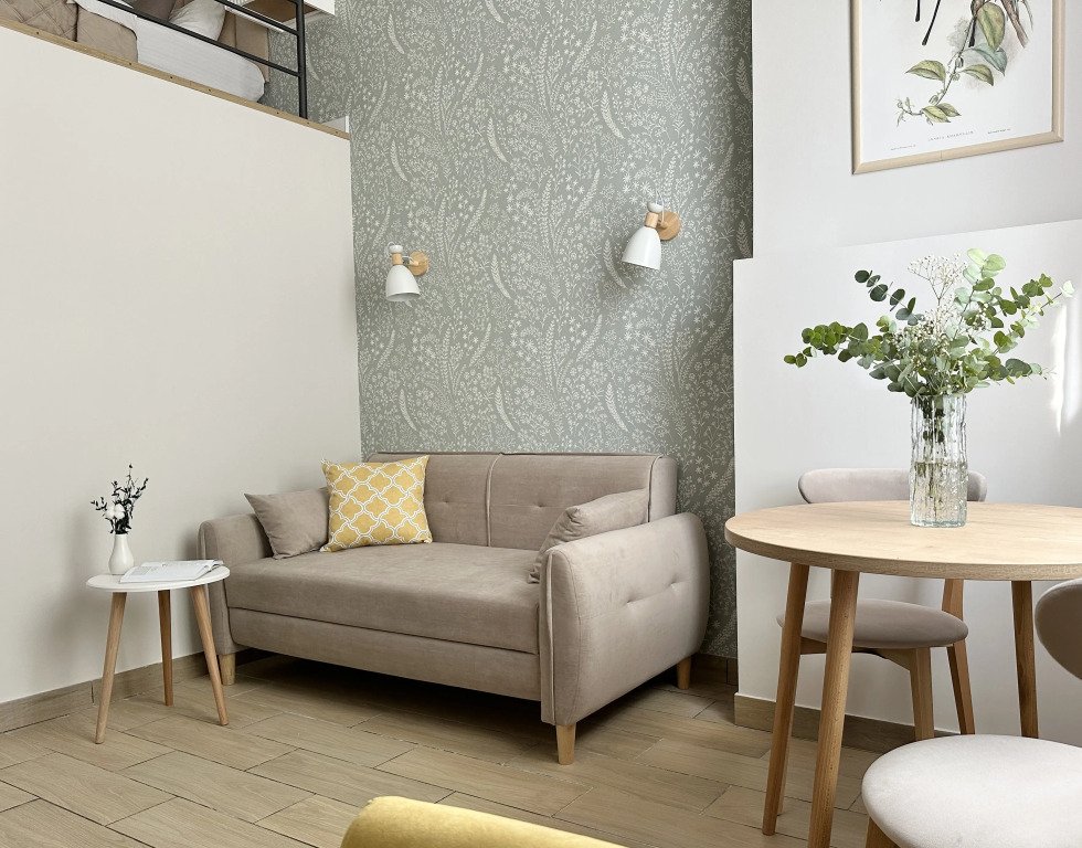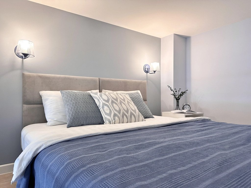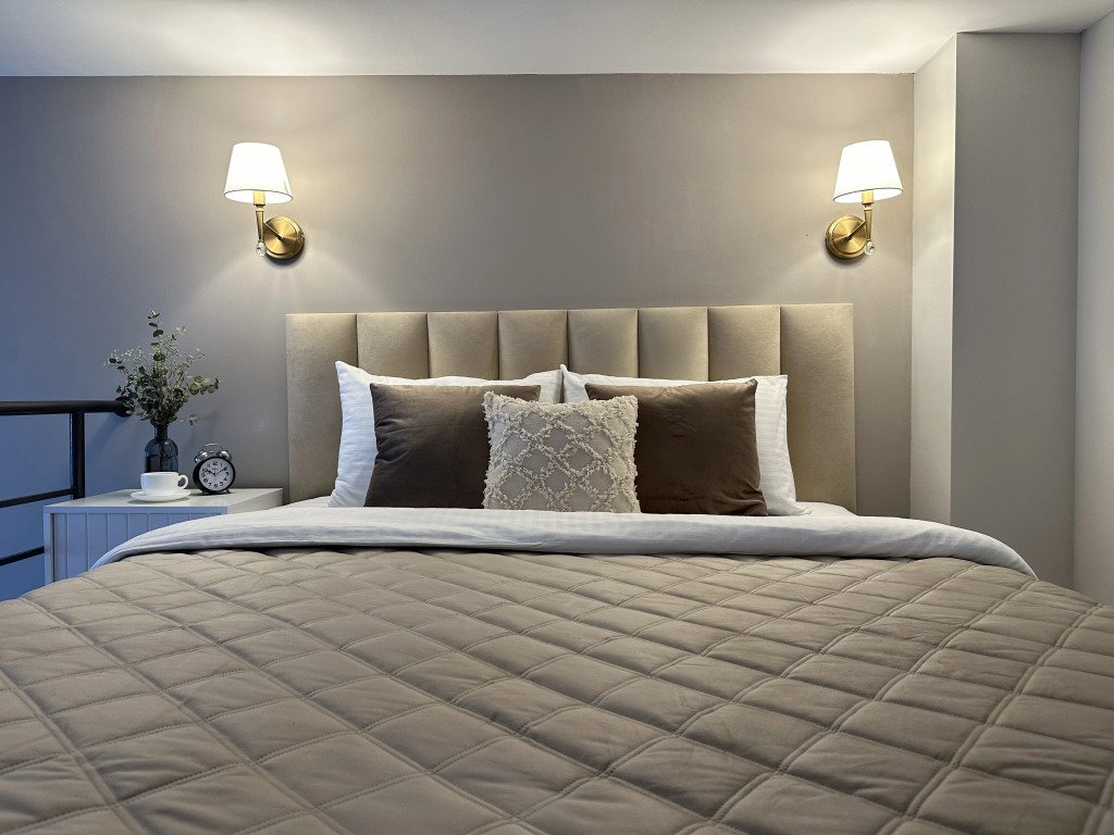 Все апартаменты имеют два уровня, на втором уровне, располагается спальня с ортопедическим основанием матрасом 160Х200, на первом уровне кухня и гостиная зона с мягким диваном-кроватью или креслом-кроватью и телевизором. Современная душевая с раковиной и санузлом. В апартаментах для пользования гостей: полотенца, постельное бельё, чай, кофе, сахар. В санузле: туалетно-косметические принадлежности, фен. Также есть кухня с плитой, всей необходимой посудой, холодильником, микроволновкой и чайником.