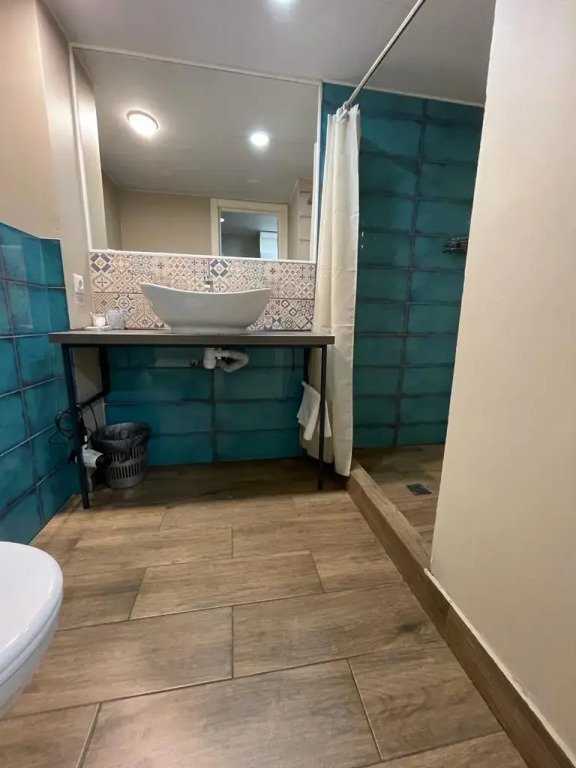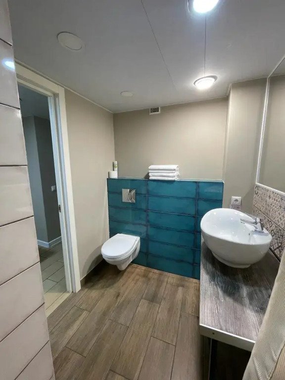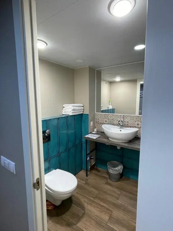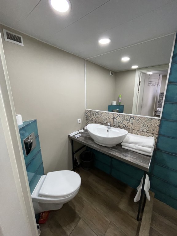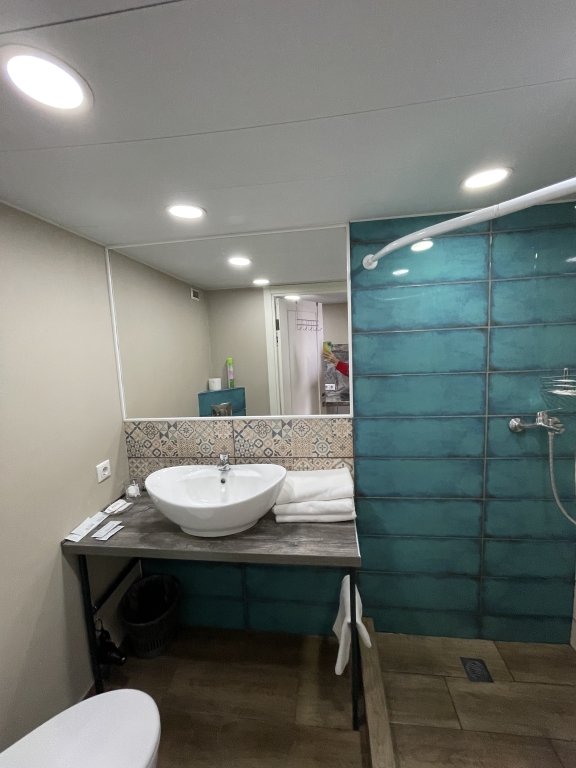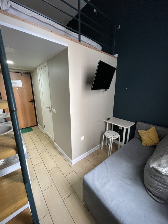 Есть мягкая зона ожидания, где можно подождать заселения если гости приехали раньше, бесплатная камера хранения и общий туалет.
