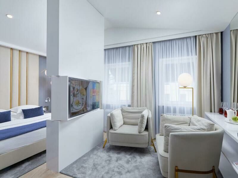 Номера современные и уютные, но сантехника вся в ссадинах, вентиляция в ванной не справляется, быстро становится очень душно. Когда были вынуждены переехать в стандартный номер первое с чем я столкнулась, это его размер) ну он прям крошечный ! Долго не могли настроить отопление, в итоге выяснилось что батарея не работает, зато есть балкон)))) для сравнения в Джуниор сьют его нет ))) доп спальное место это раскладушка, неудобная от слова совсем )) и для таких небольших номеров это тоже не самое лучшее решение.