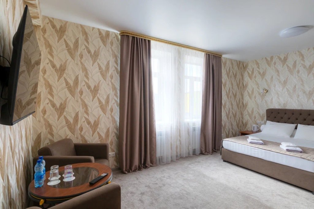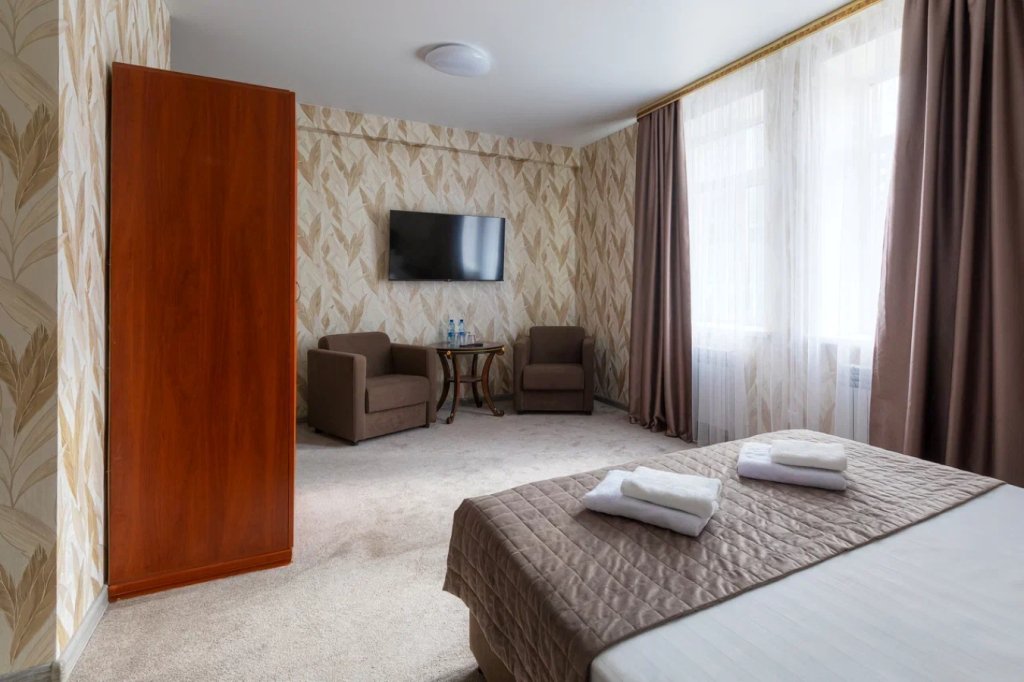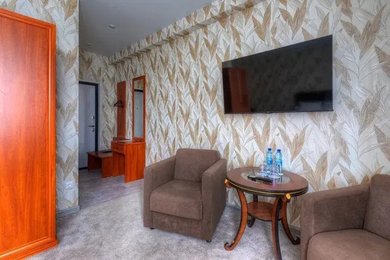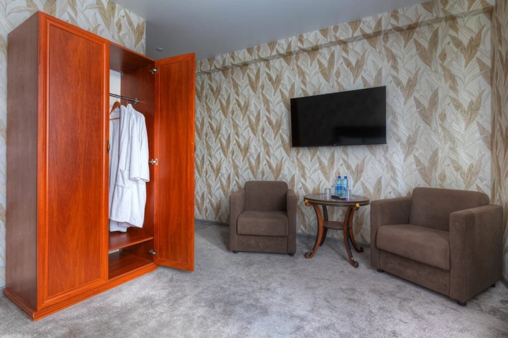 В номере гостей ждут телевизор и халат. Перечисленные услуги есть не во всех номерах.