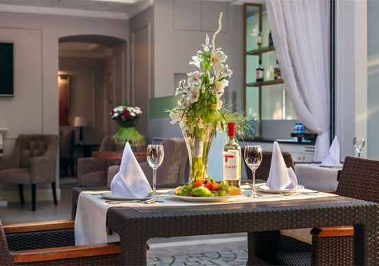 Вы окунетесь в винную культуру Франции, Италии, Испании и других стран. Великолепные вина позволят насладится букетами ароматов и изысканными вкусами.Бар открыт для Вас ежедневно с 07:00 до 23:00.