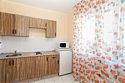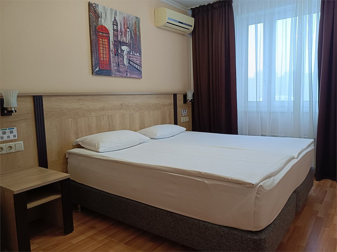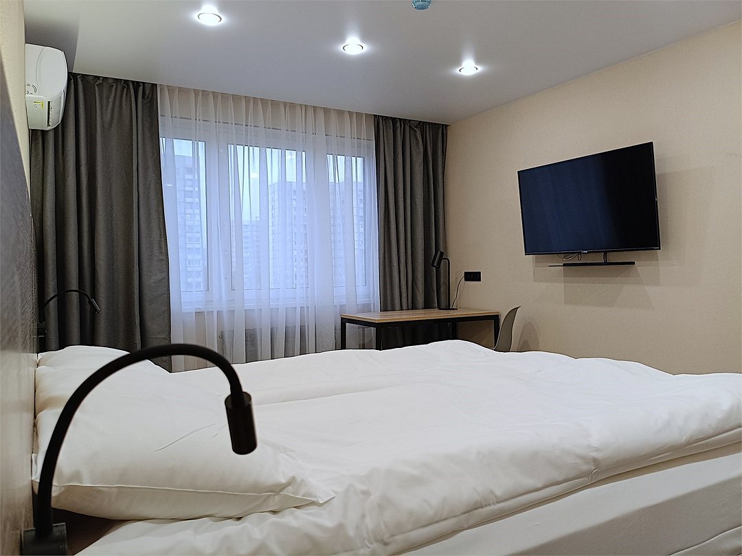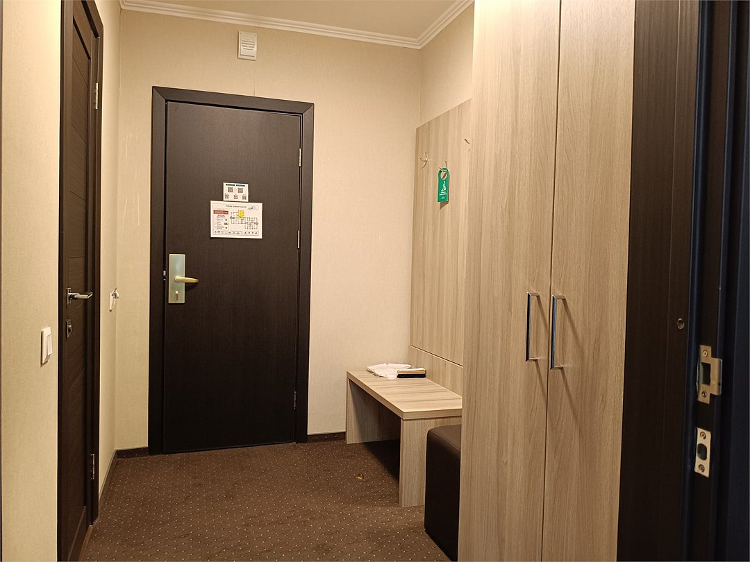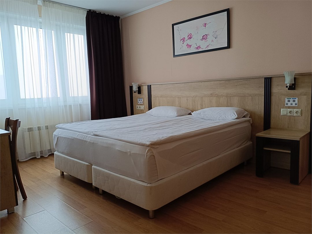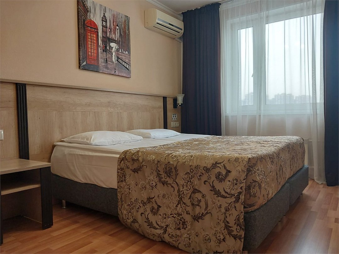 Путешествие по работеПрактичный вариантОстановилась в этой гостинице на время командировки. Номер комфорт двухместный. Две комнаты и кухня, то есть аналог двухкомнатной квартиры. Плюсы: хороший завтрак, чистый и просторный номер, оборудованная кухня (холодильник, чайник, эл плита, микроволновая печь), бутылочная вода при заселении, белоснежное постельное белье и полотенца, радушный и отзывчивый персонал, недалеко станция метро, в двух минутах торговый центр в котором удачно расположен "Перекресток" (нет проблем с покупкой продуктов). Минусы: недостаток информации о сервисе (в номере нет информации о том, как настроить телевизор и интернет), неприятный запах на первом этаже. Возможно остановлюсь повторно в этой гостинице.