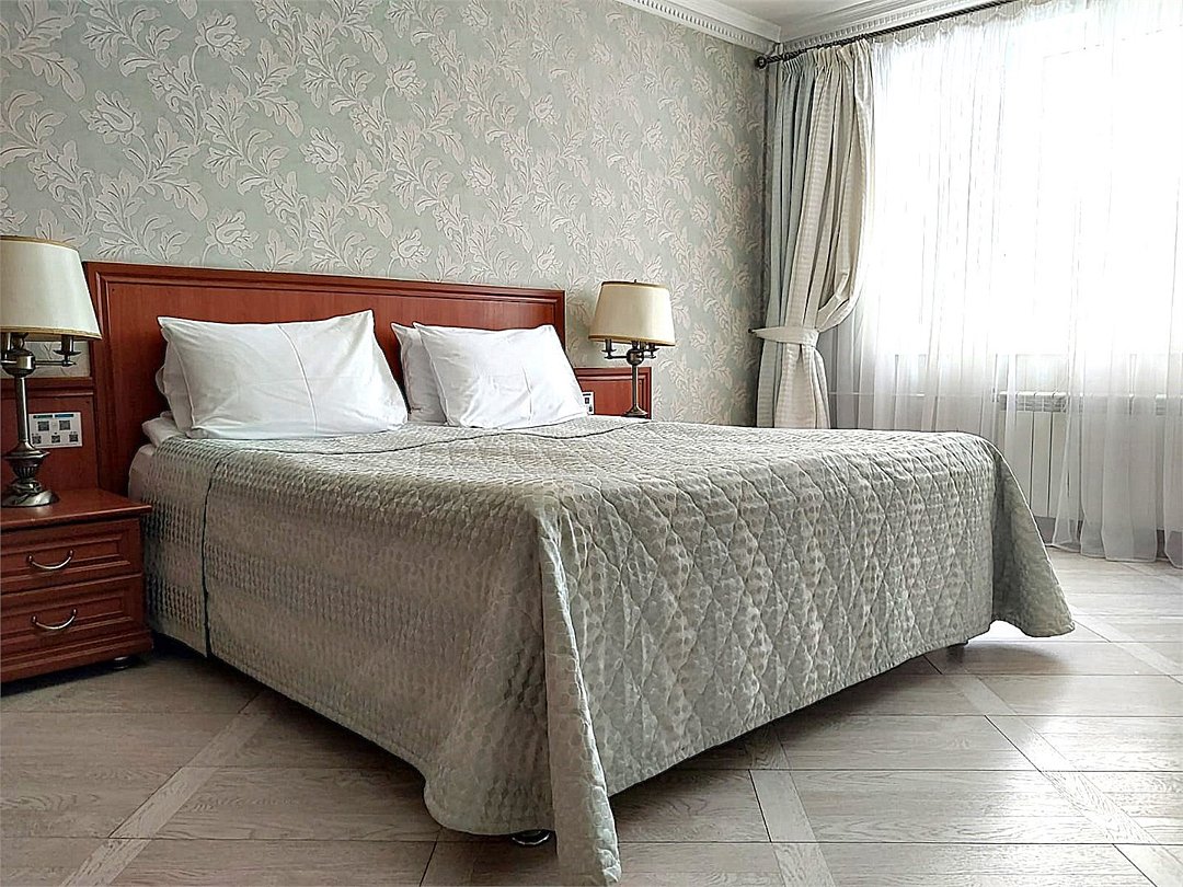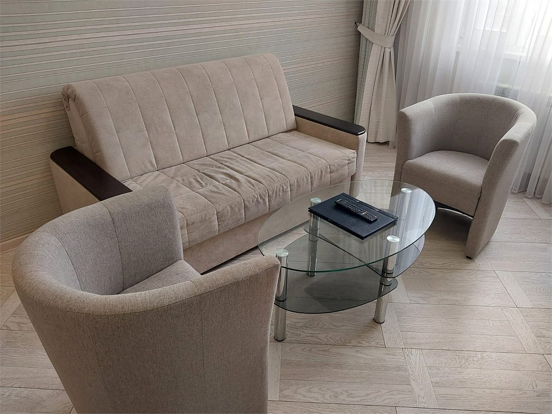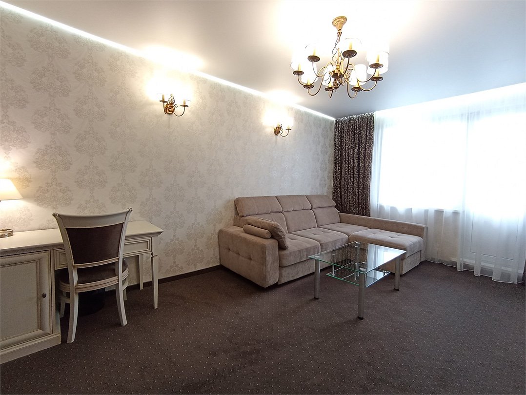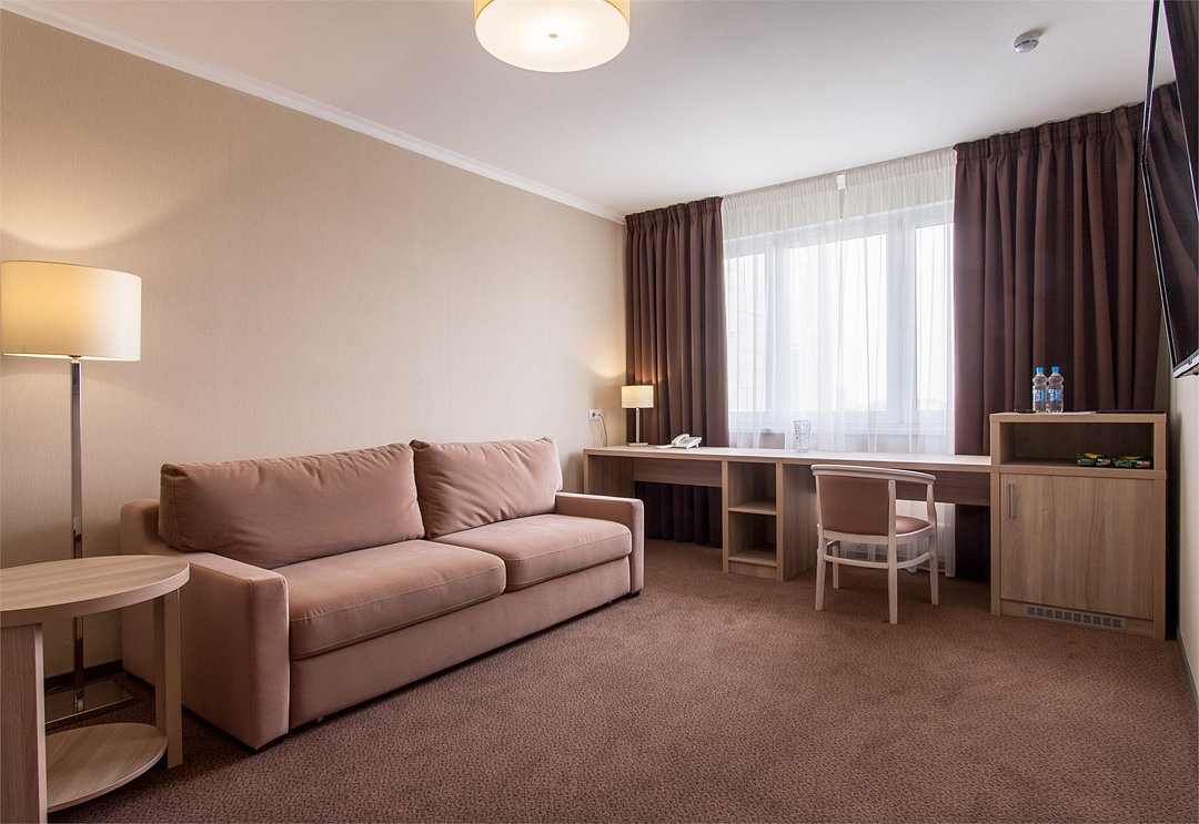 Двухкомнатный номер, состоящий из спальни с двуспальной кроватью, гостиной с набором мягкой мебели (диван и кресла). Раскладной диван может быть использован в качестве дополнительного места как для взрослого, так и для ребёнка. Раздельные туалетная и ванная комнаты. Дети до 7 лет проживают в любом номере с родителями бесплатно без предоставления дополнительного места. Детская кроватка предоставляется по запросу.Услуги и удобства