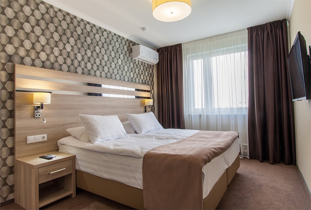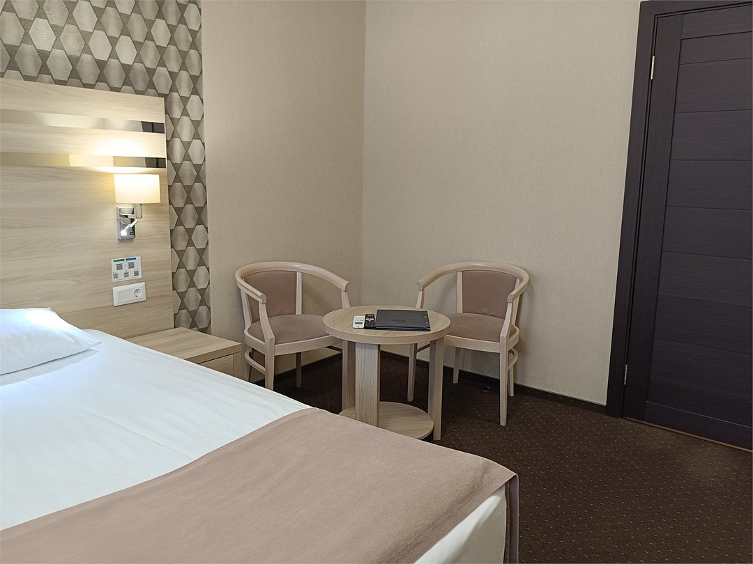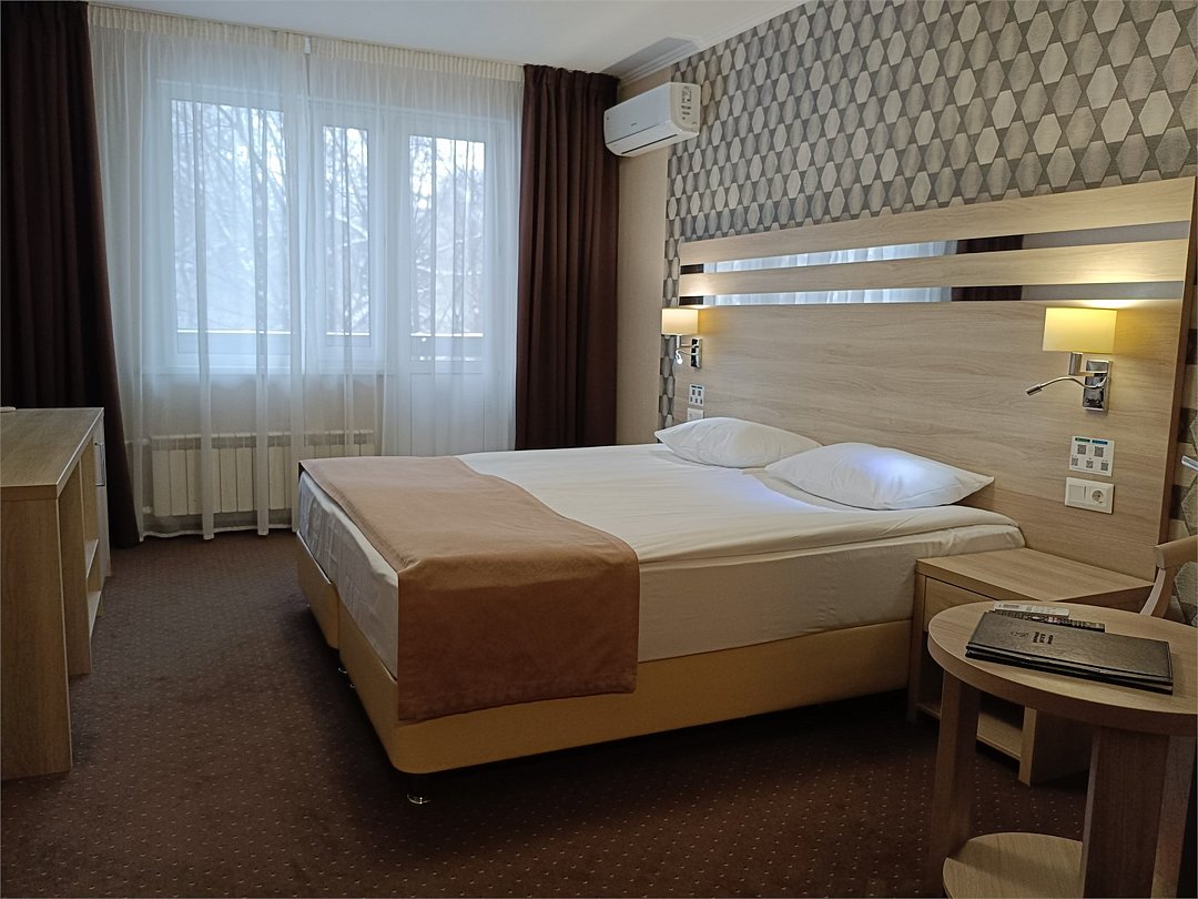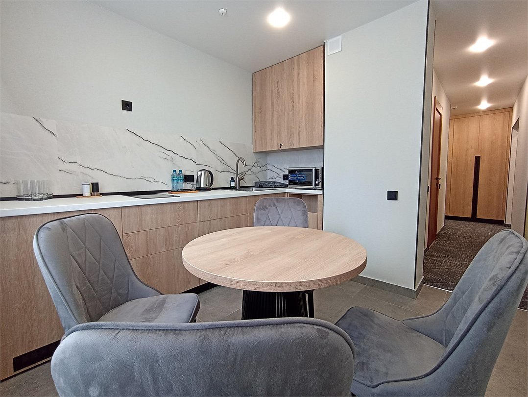 Комфортабельный однокомнатный номер с современным дизайном, состоящий из спальни, кухни и ванной комнаты. Номер оборудован системой кондиционирования воздуха. В номере удобная современная мебель, двуспальная кровать или две раздельные кровати, а так же организованное рабочее пространство с письменным столом. Номер реновирован в 2025 году.Услуги и удобства