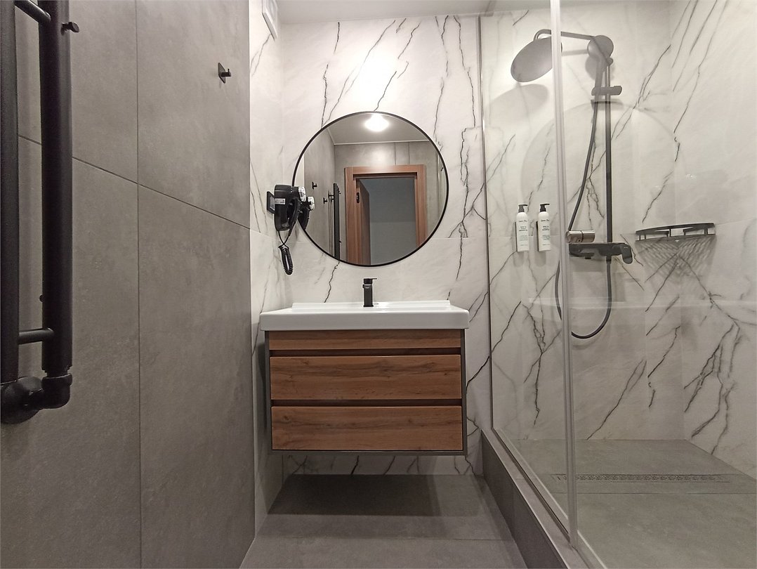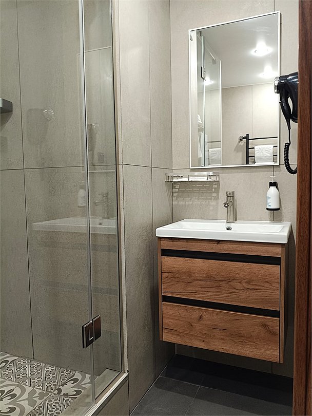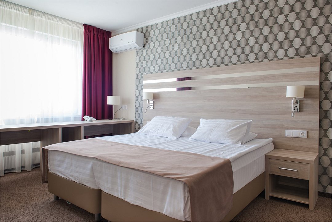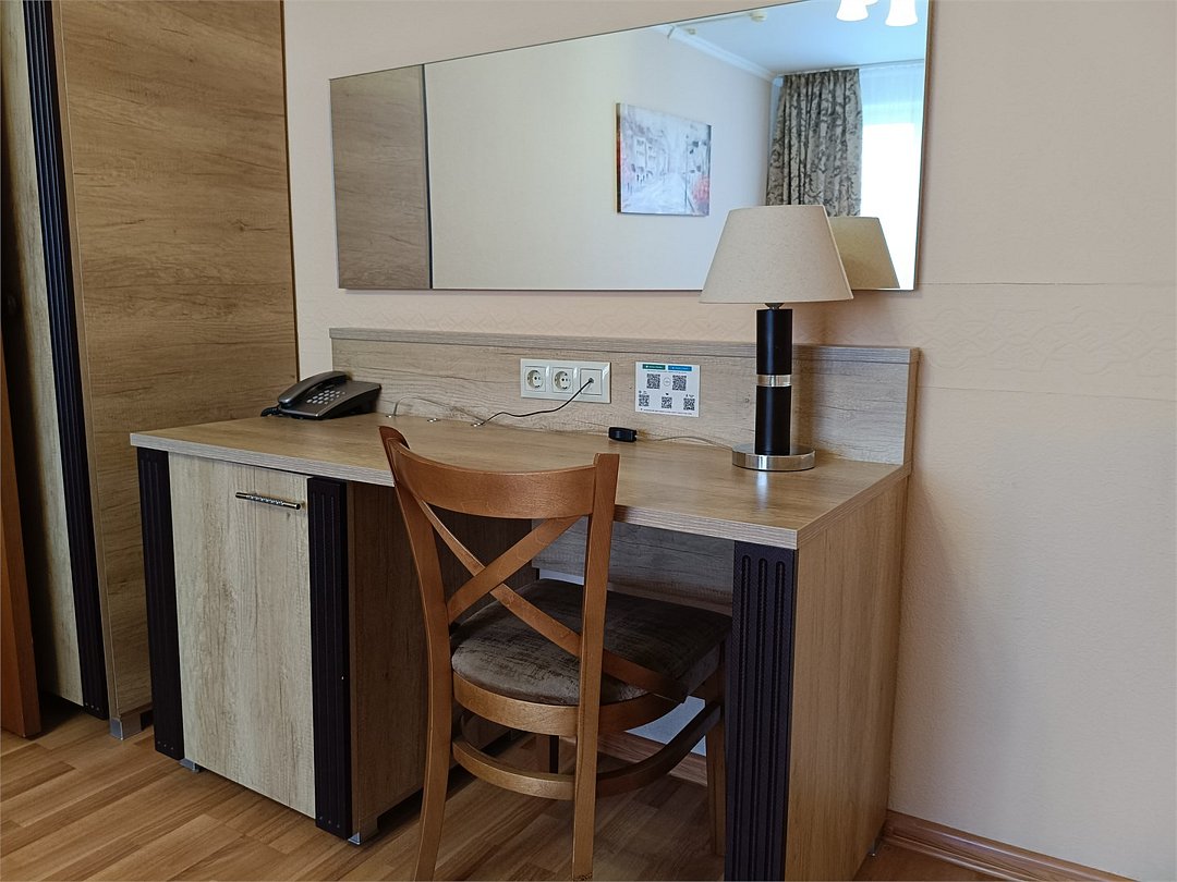 Комфортабельный однокомнатный номер с современным дизайном, состоящий из спальни, кухни и ванной комнаты. Номер оборудован системой кондиционирования воздуха. В номере удобная современная мебель, двуспальная кровать или две раздельные кровати, а так же организованное рабочее пространство с письменным столом. Номер реновирован в 2025 году.Услуги и удобства