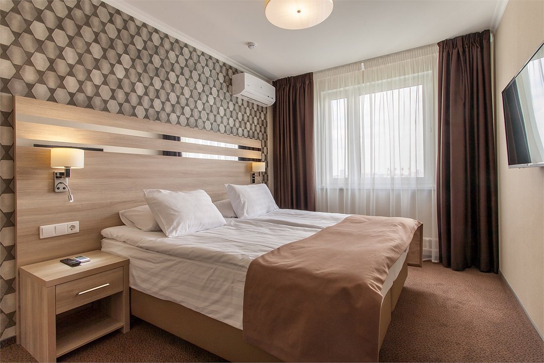 Комфортабельный однокомнатный номер БЕЗ КУХНИ с современным дизайном, состоящий из спальни, прихожей и ванной комнаты. В номере удобная современная мебель, двуспальная кровать (180*200) или две раздельные кровати (90*200), а так же организованное рабочее пространство с письменным столом. Номер укомплектован микроволновой печью, чайной станцией, кондиционером.Услуги и удобства