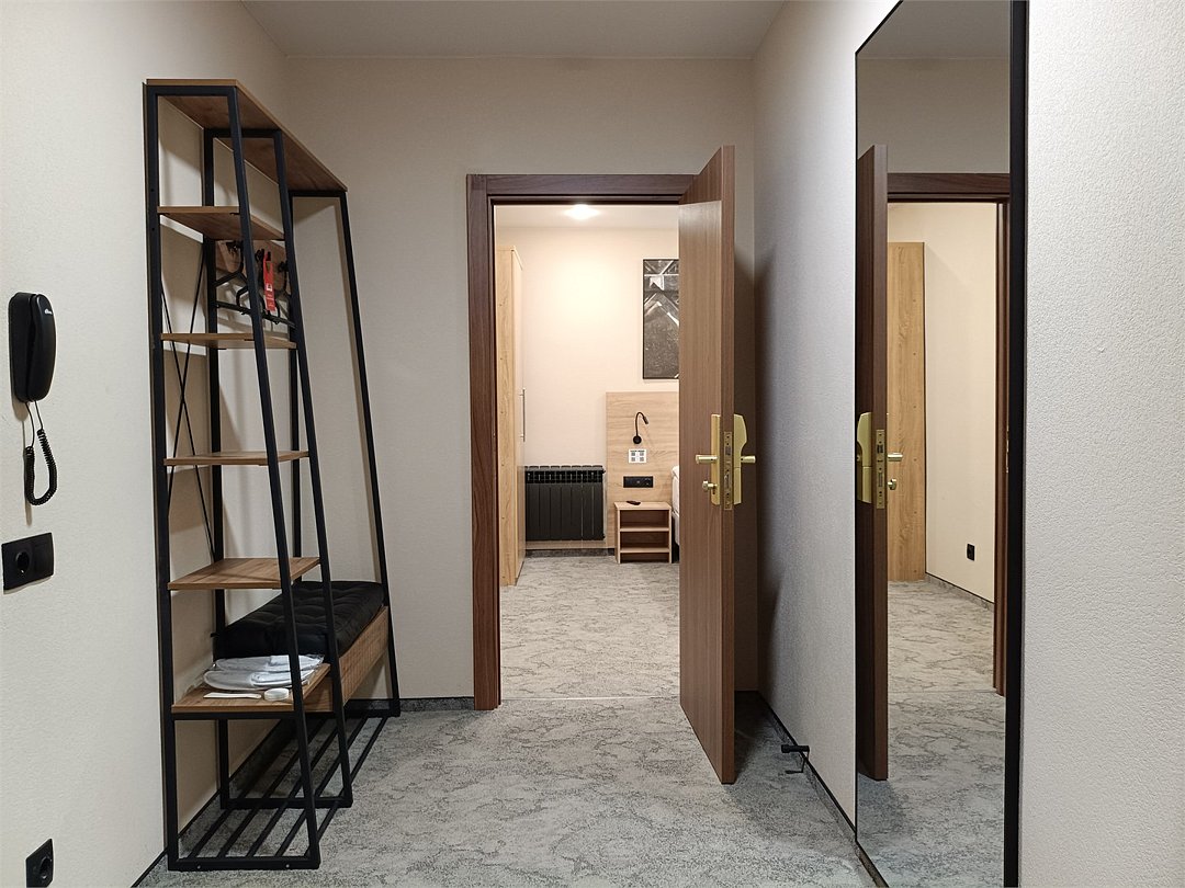 Двухкомнатный номер с полностью оборудованной кухней, спальней с одной двуспальной или двумя раздельными кроватями и гостиной с набором мягкой мебели (диван и кресла). Раскладной диван может быть использован в качестве дополнительного места как для взрослого, так и для ребёнка. Раздельные туалетная и ванная комнаты. Дети до 7 лет проживают в любом номере с родителями бесплатно без предоставления дополнительного места. Детская кроватка предоставляется по запросу.Услуги и удобства