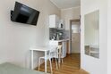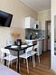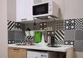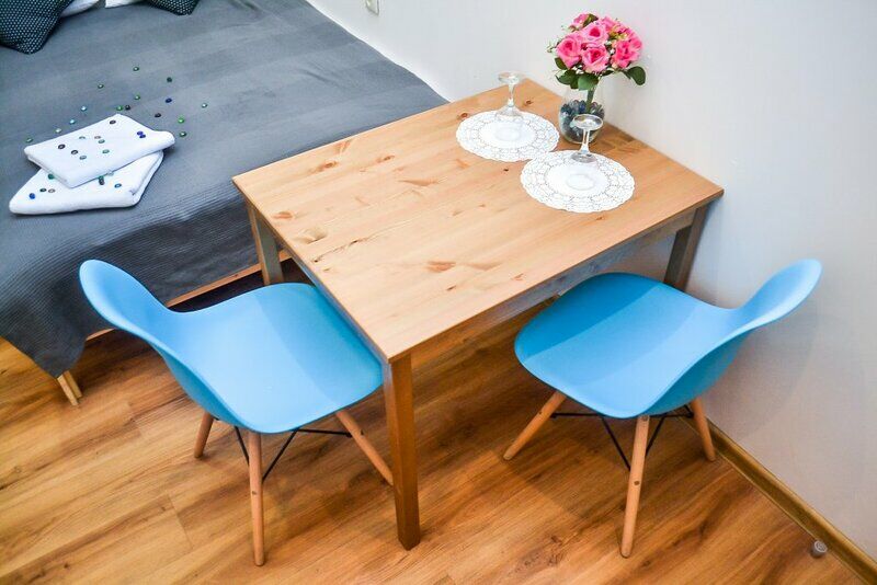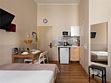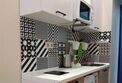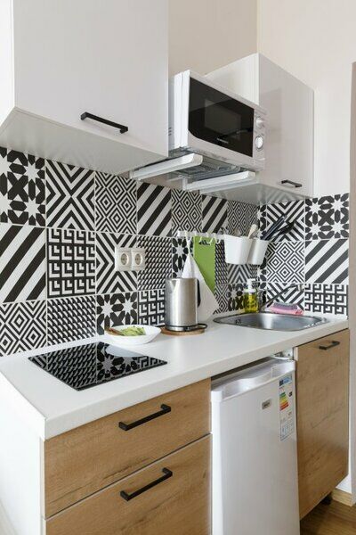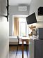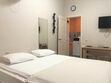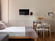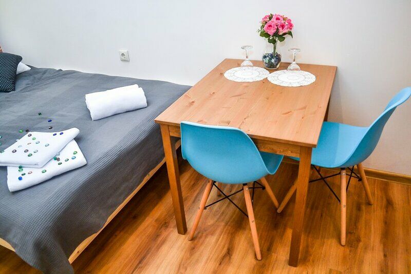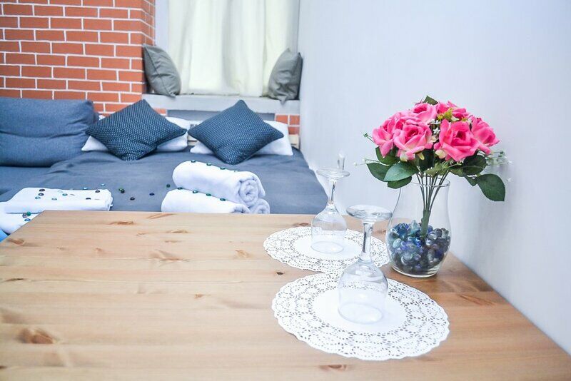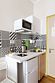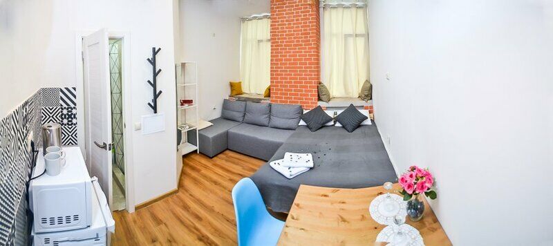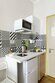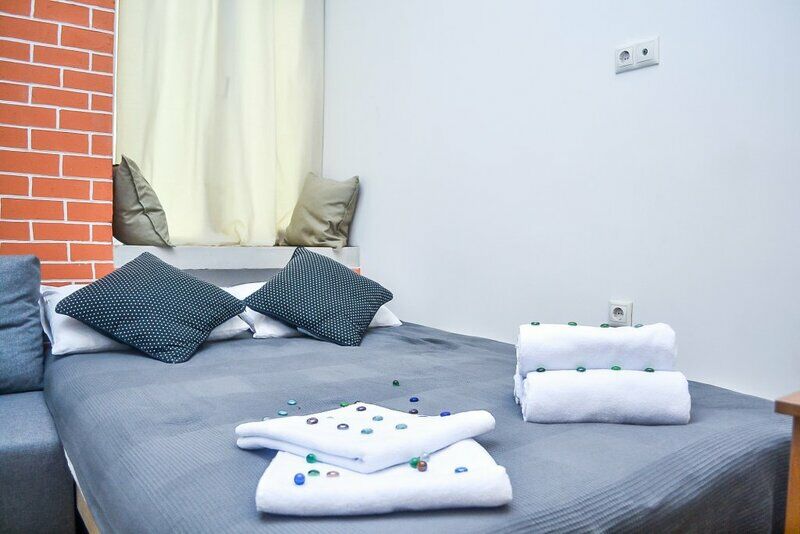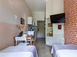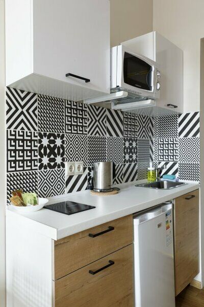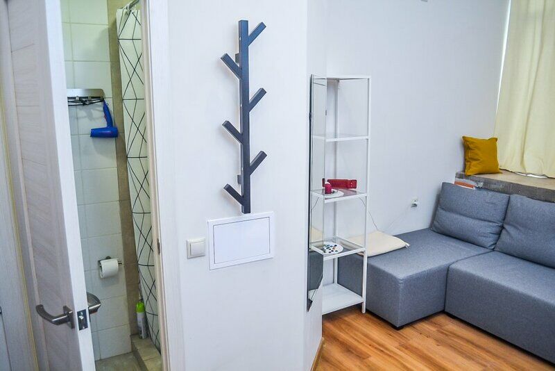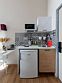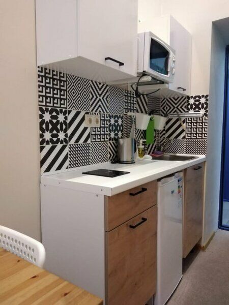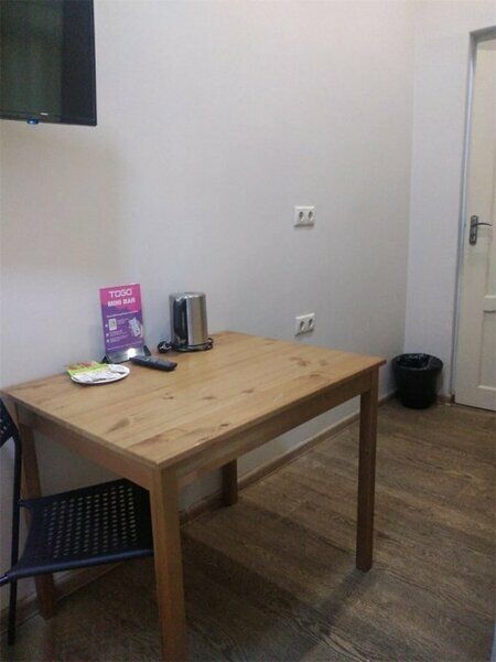 Номер маленький , чистый, приятное свежее постельное белье, жидкое мыло в ванной и на кухне. На кухне есть холодильник, плитка, микроволновка, кружки, бокалы, тарелки, кастрюля, столовые приборы.