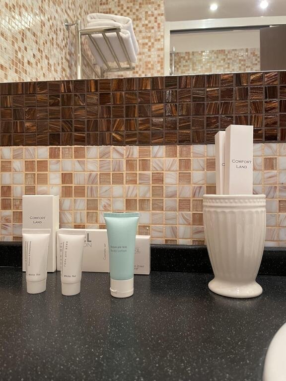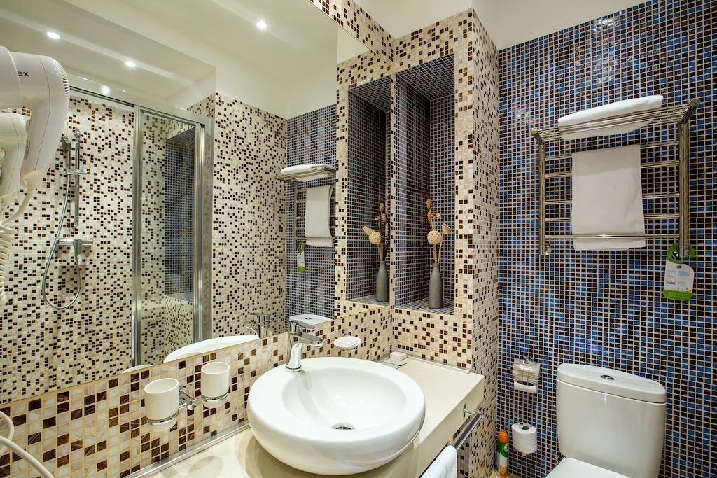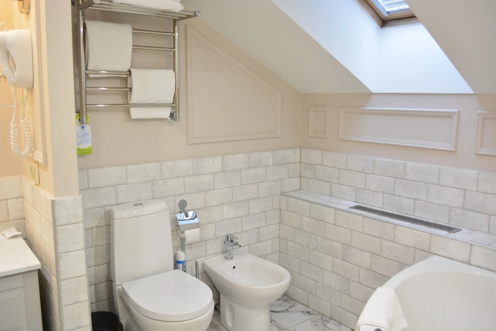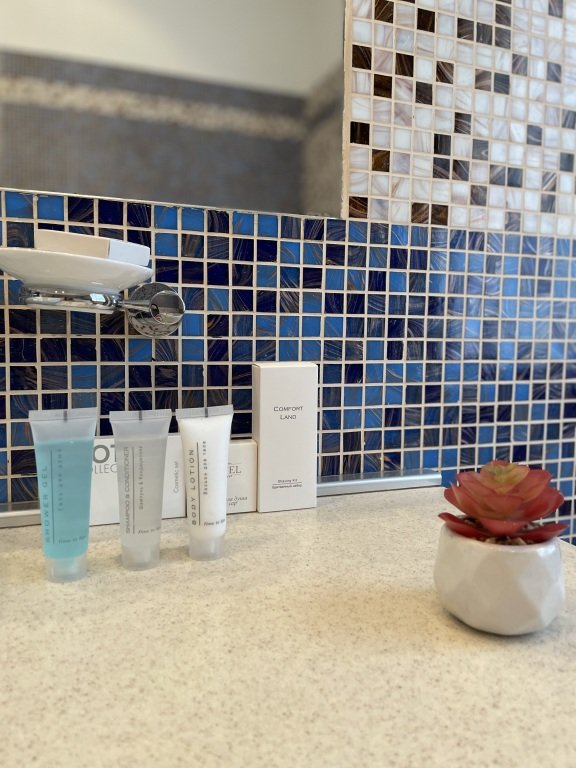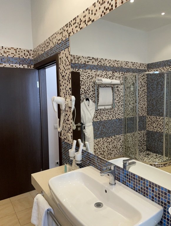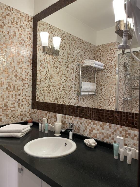 В собственной ванной комнате предлагается фен и бесплатные туалетно-косметические принадлежности.